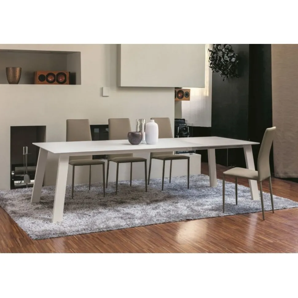 Tavolo Allungabile Kalua, Linee Solide E Squadrate Per Un Tavolo Che E Caratterizzato Da Un’Ampia Allunga Laterale Di Facile Apertura Senza Rinunciare Ad Un Ampia Possibilita Di Personalizzazione Nelle Dimensioni E Nelle Finiture.