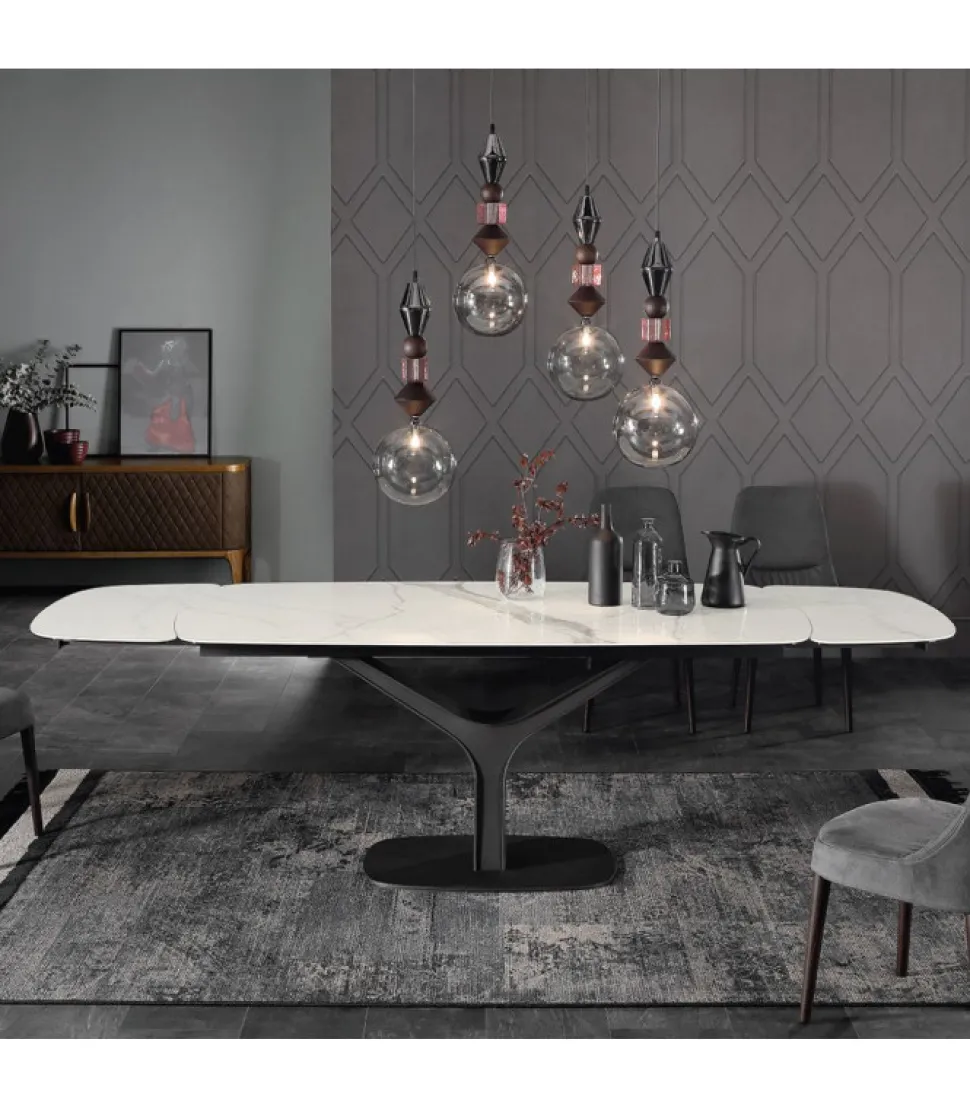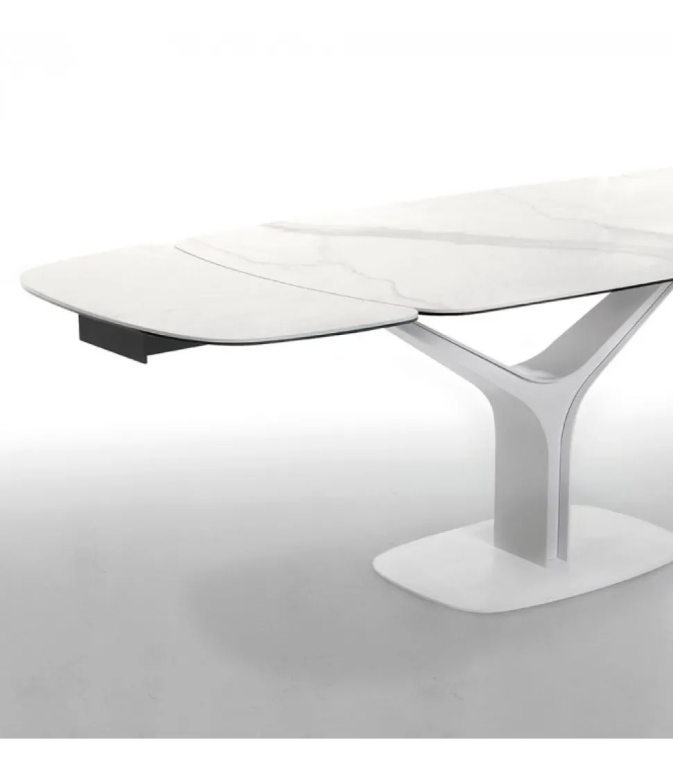 The New Contemporary: La Miglior Definizione Per Il Nuovo Tavolo Ariston, Presentato Da Tonin Casa. La Fermezza Dell’Acciaio Viene Qui Resa Morbida E Agile, Grazie Alle Curve Che Formano La Base Di Questo Tavolo. I Piani In Gres Porcellanato, Disponibili In Tutte Le Finiture Tonin Casa, Si Poggiano Sicuri Su Binari In Alluminio Studiati Per Combinare Eleganza E Funzionalita.