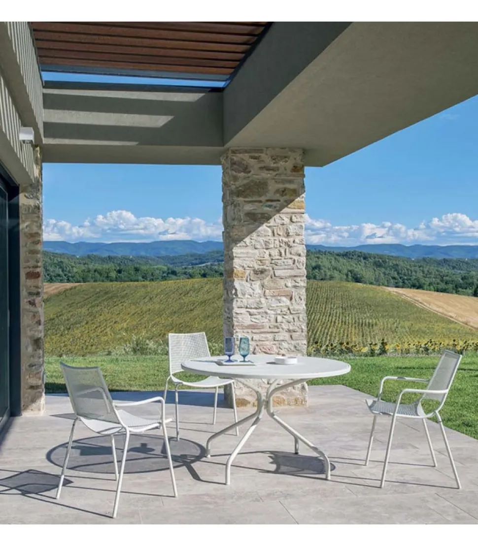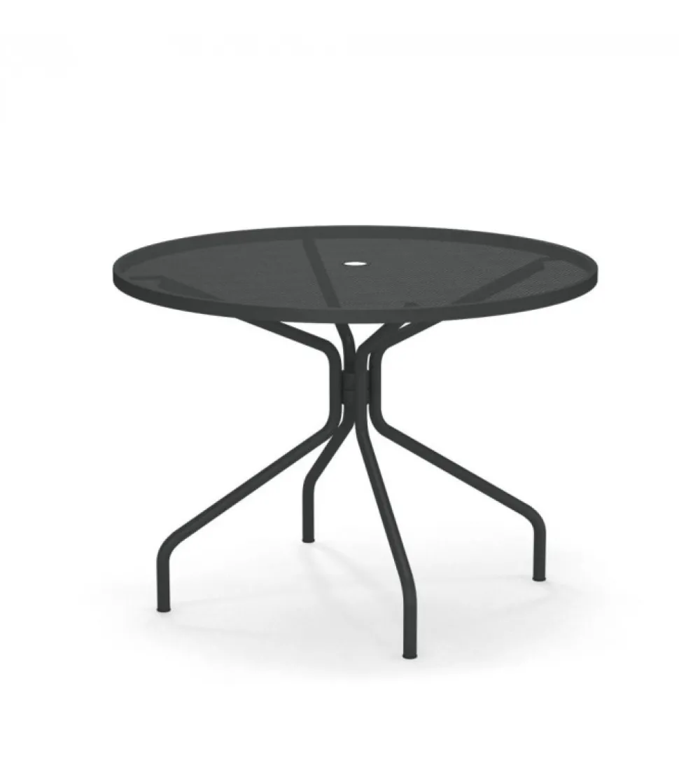 Confortevole E Con Un Design Essenziale, Cambi E Un Set Di Tavoli Che Si Inserisce Naturalmente Nei Piu Diversi Contesti. Il Piano Dei Tavoli Tondi E Quadrati E In Lamiera Stirata Mentre Quello Dei Tavoli Rettangolari E In Lamiera Forata.