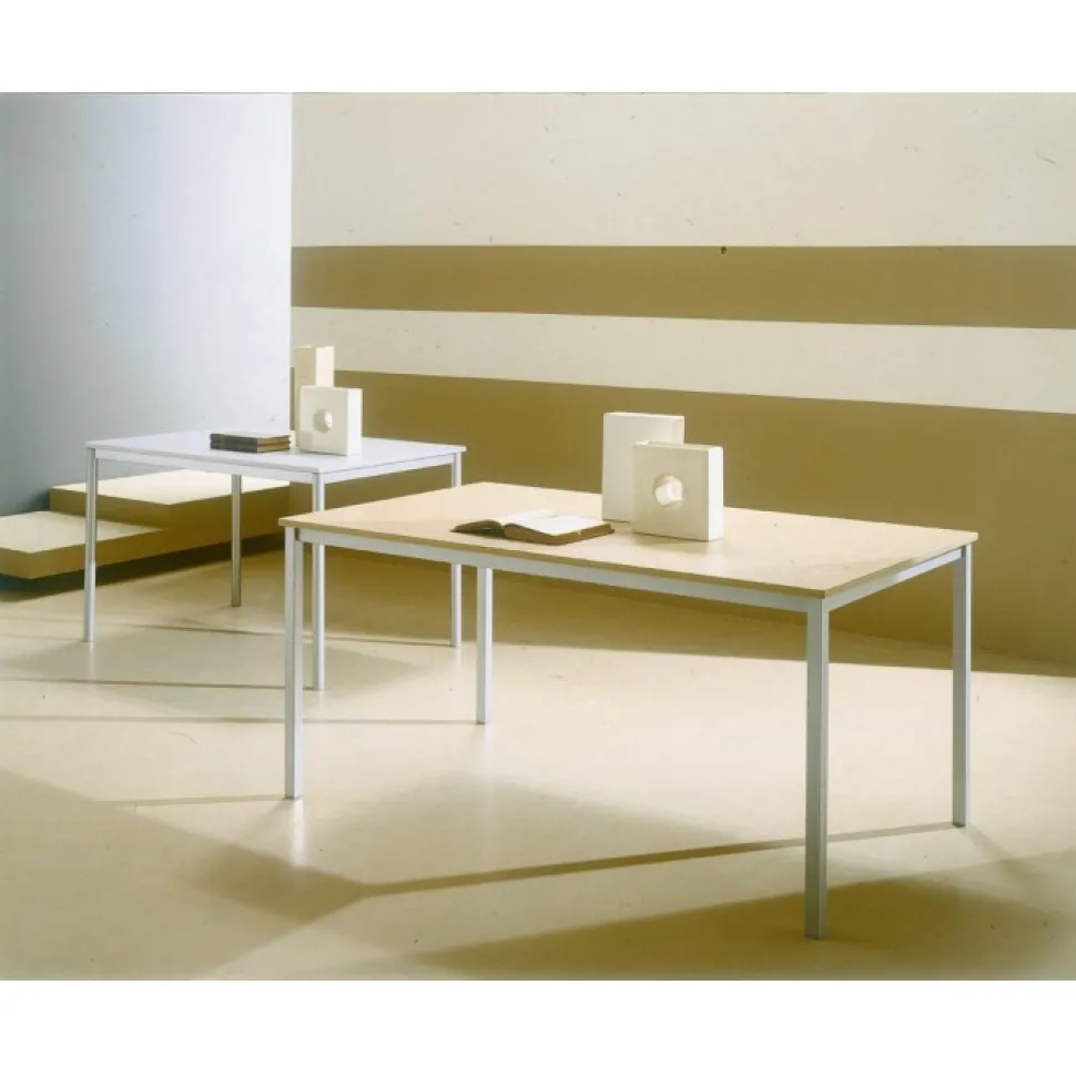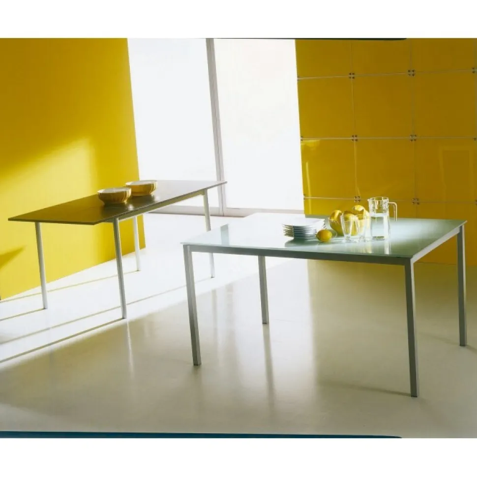 Tavolo Fisso Bios Con Struttura In Acciaio Laccato E Piano A Scelta Tra Il Melaminico, Il Cristallo Lucido Laccato E Il Cristallo Velvet Antigraffio Opaco. Il Piano In Vetro Temperato Per Garantire La Massima Sicurezza Di Utilizzo.