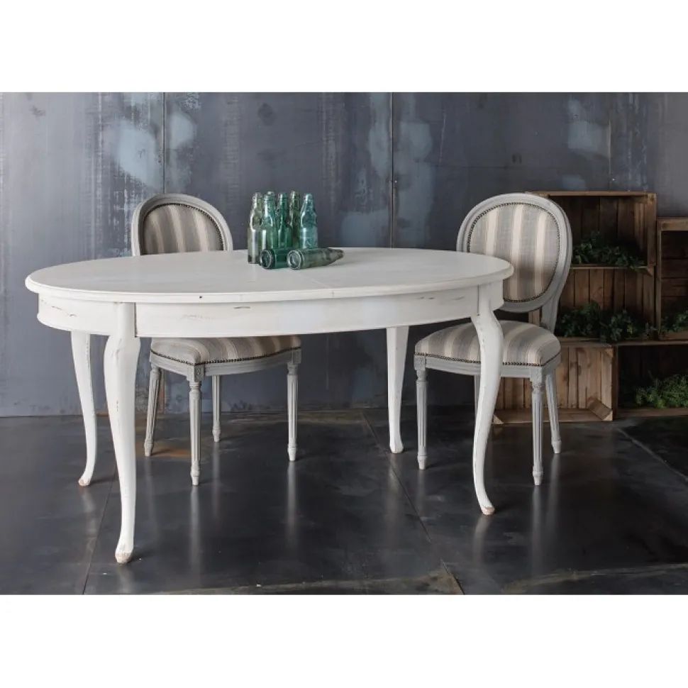 Tavolo Ovale Allungabile 604 In Finitura Shabby Chic, Con Gambe A Sciabola, Il Fascino Ed Il Calore Del Legno Vissuto, Questo E Cio Che Rende Unico Lo Stile Shabby.