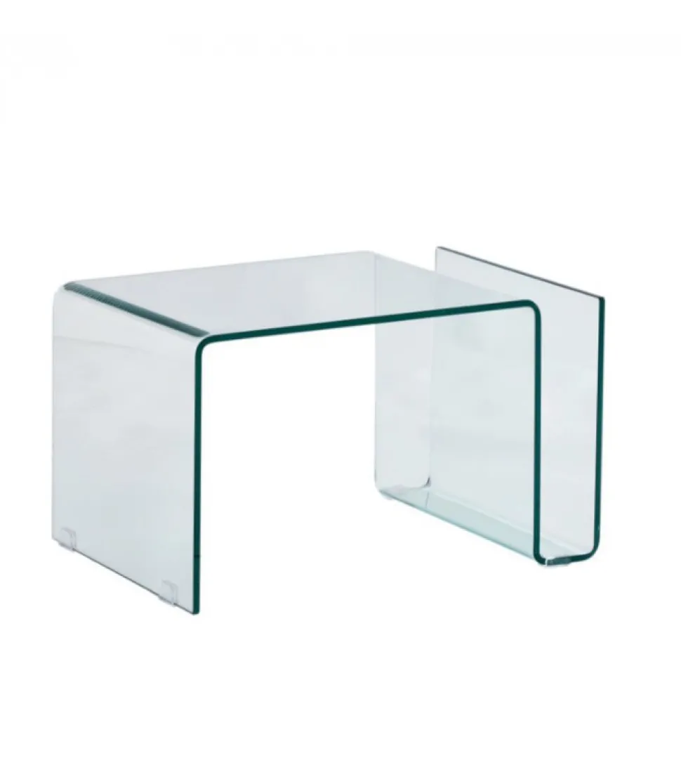 Tavolino Rettangolare In Vetro Temperato Curvato Con Portariviste. Semplice Versatile In Tutti Gli Ambienti Della Casa E Comunita.