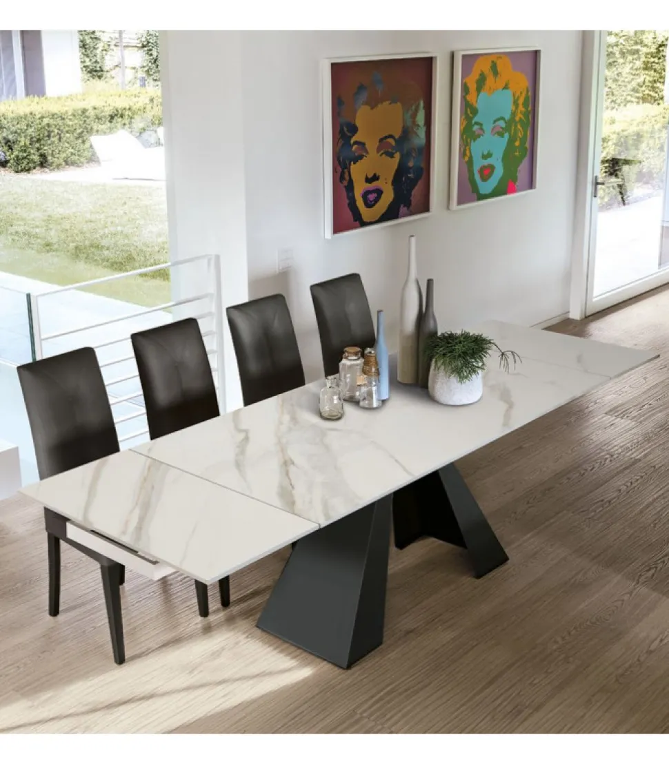 Taurus, E Un Tavolo Allungabile Con Struttura In Metallo Verniciato O Spazzolato, Il Piano E Le Allunghe Laterali Sono In Gres Porcellanato. E Adatto Alla Living Zone Ed Alla Sala Da Pranzo.