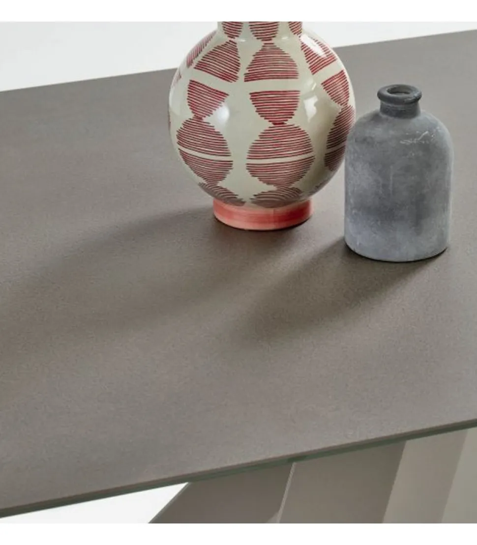 Tavolo Rettangolare Allungabile Con Struttura In Acciaio Laccato. Piano E Prolunghe In Melaminico, Legno Impiallacciato, Cristallo, Cristallo Antigraffio, Superceramica E Supermarmo.