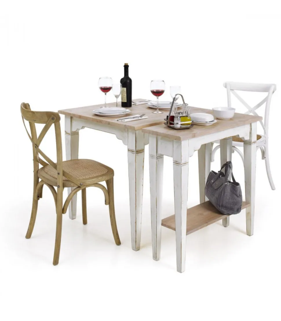 Tavolo Vietri 80 X 80 Shabby Con Gambe Verniciate E Piano In Legno Finitura Naturale