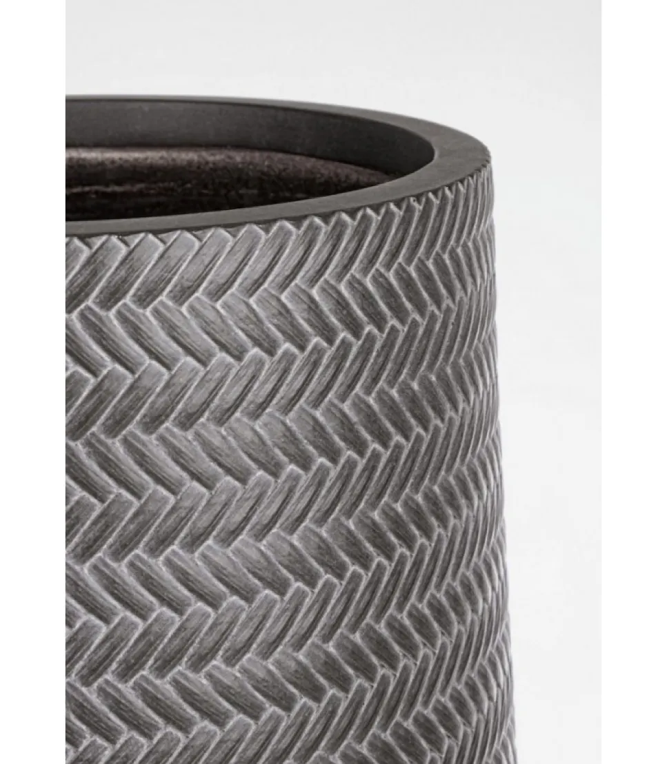 Set2 Vaso Tressage To Alto Grigio Fibra Di Vetro E Argilla Colorata. Foro E Tappo Sul Fondo. Da Esterno. – Dimensioni In Cm. O34 (L.) 55 H; O47 (L.) 75 H