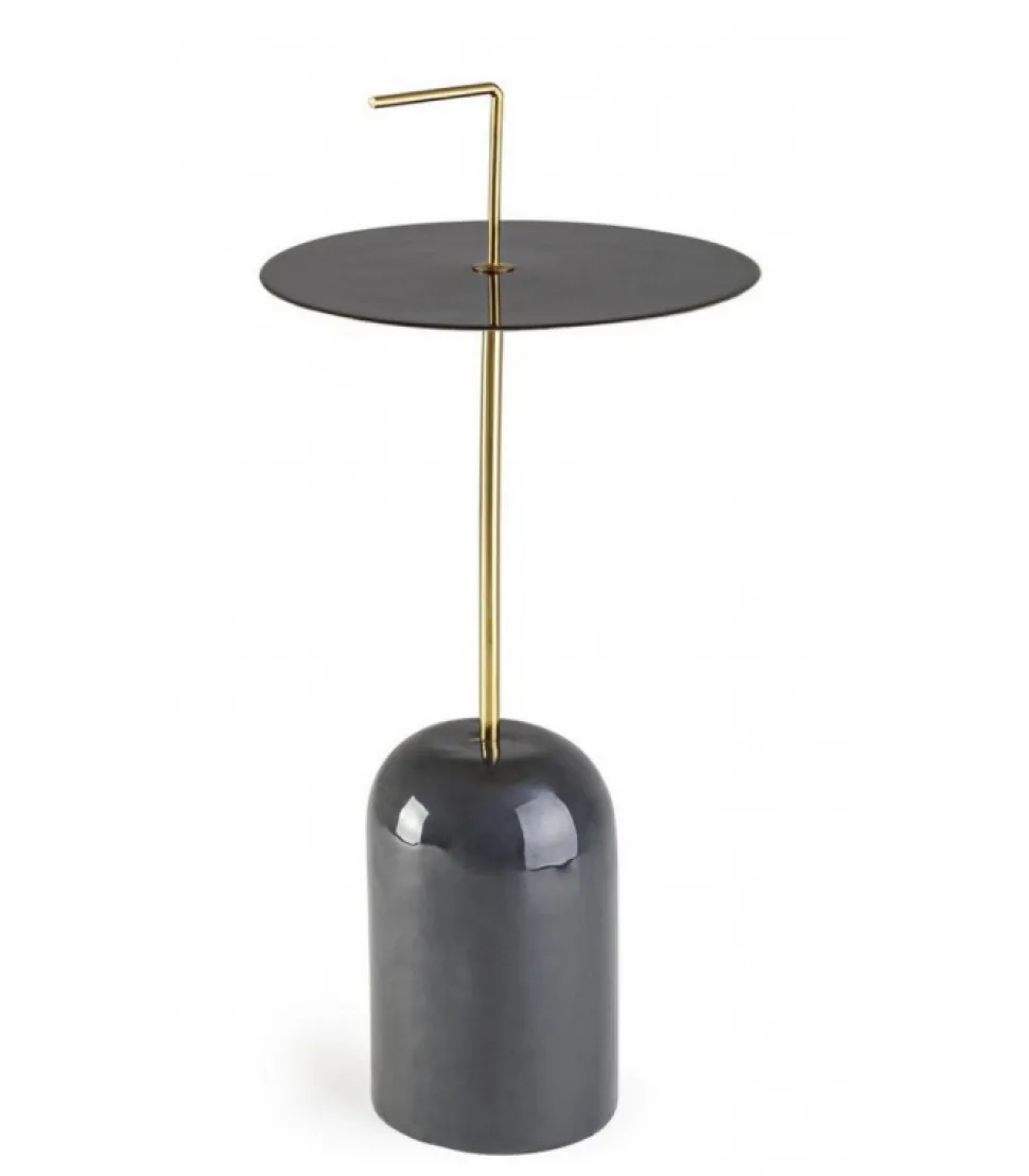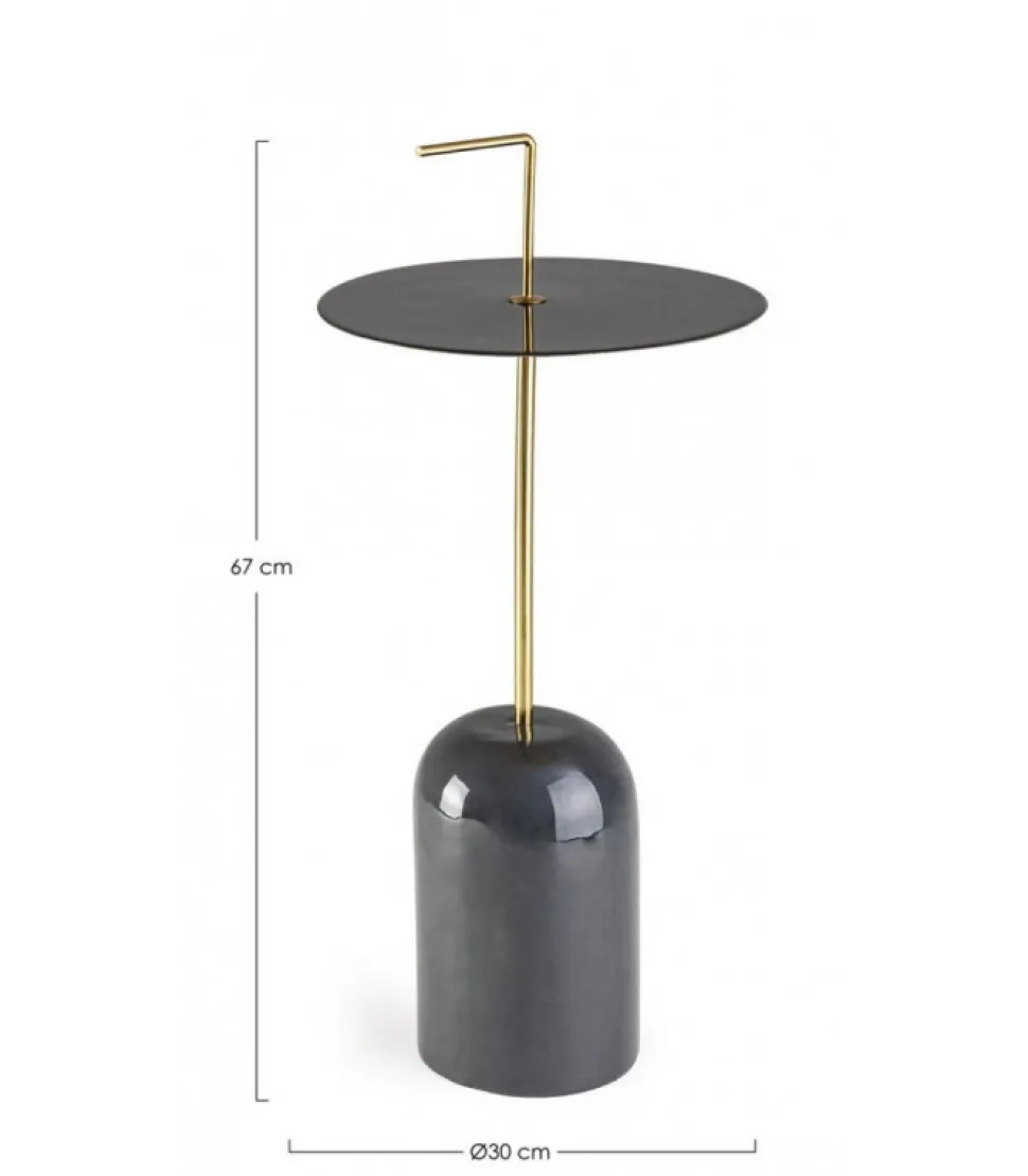 Tavolino Tulasi Grigio D30 Struttura In Acciaio Con Finitura A Smalto, Maniglia Con Finitura Placcata Ottone. Da Assemblare. – Dimensioni In Cm. O30 (L.) 67 H