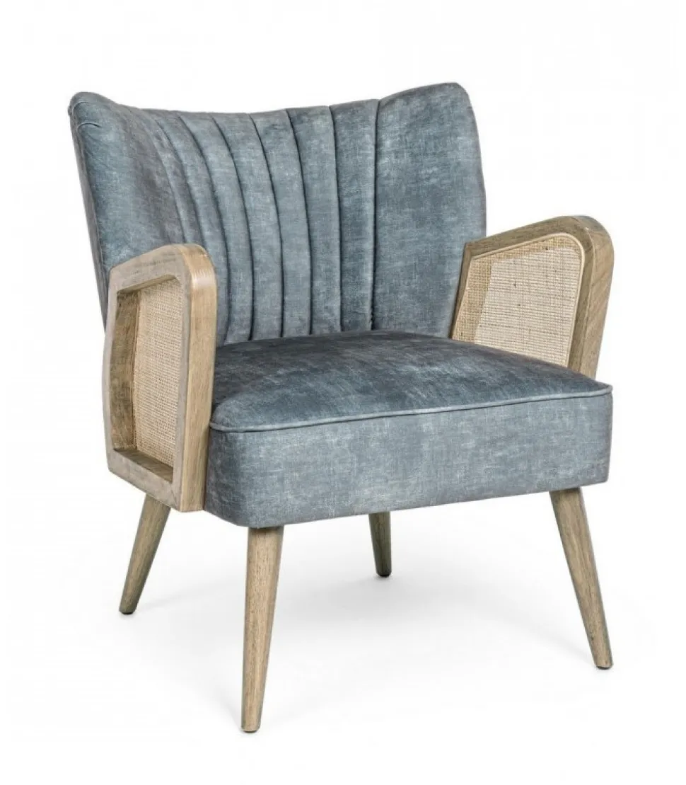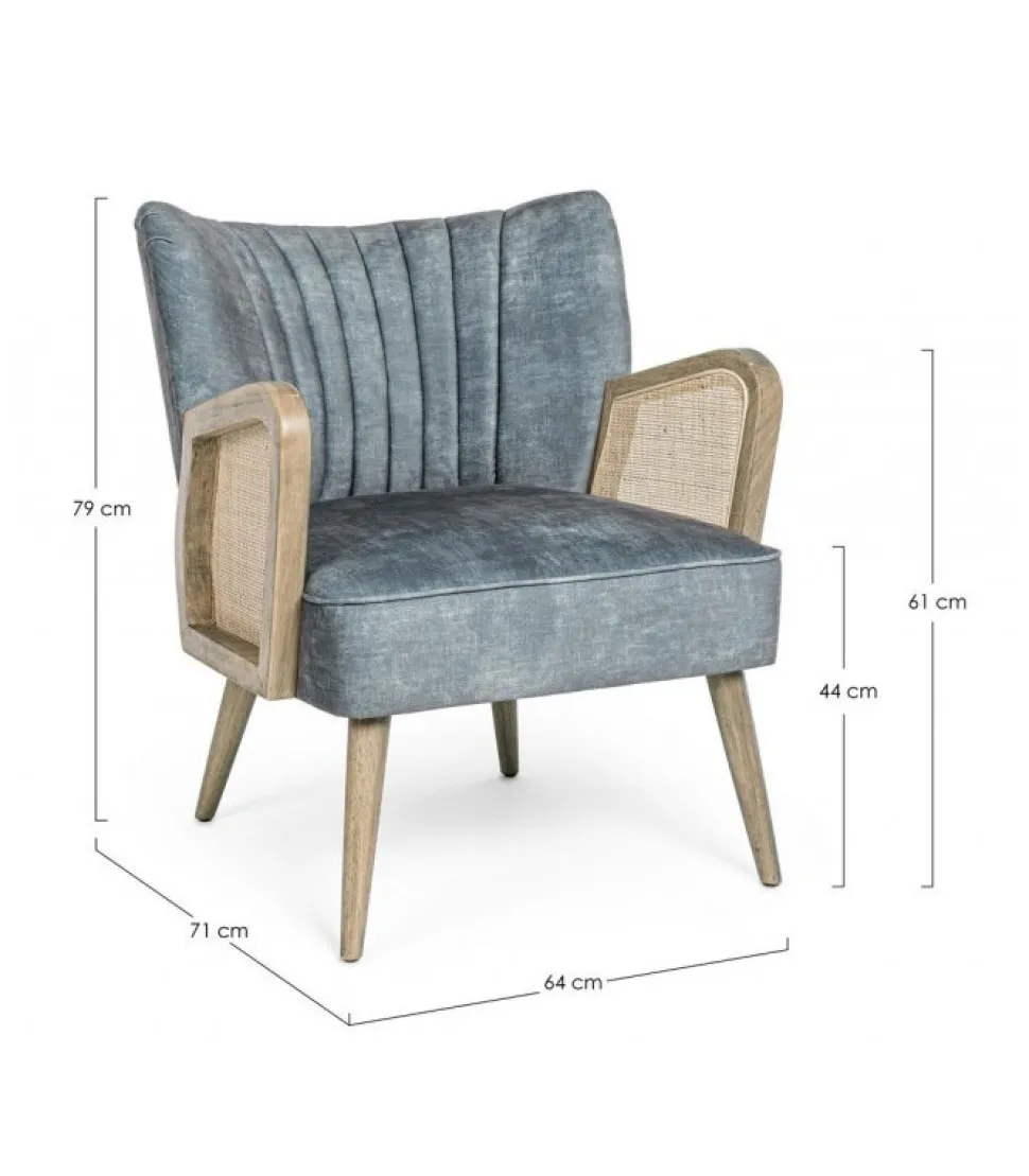 Poltrona Virna Costal Struttura In Legno Di Pino E Compensato. Gambe In Rubberwood. Braccioli Con Inserti In Rattan. Rivestimento In Poliestere. Densita’ Imbottitura In Schiuma Poliuretanica 24 Kg/M3. Non Sfoderabile. Gambe Da Assemblare. – Dimensioni In Cm. 64 (L.) 71 (P.) 79 ( H.) 44 ( H1) – 61 ( H2)