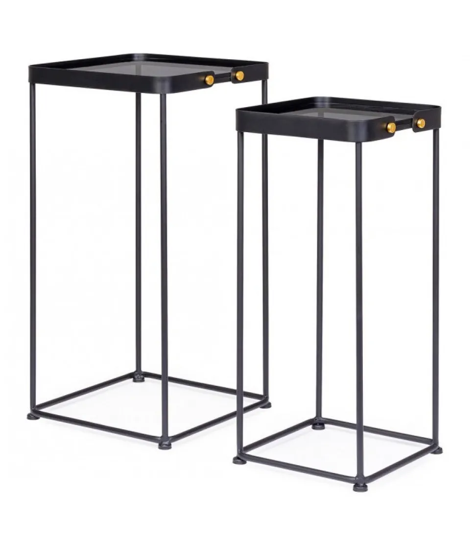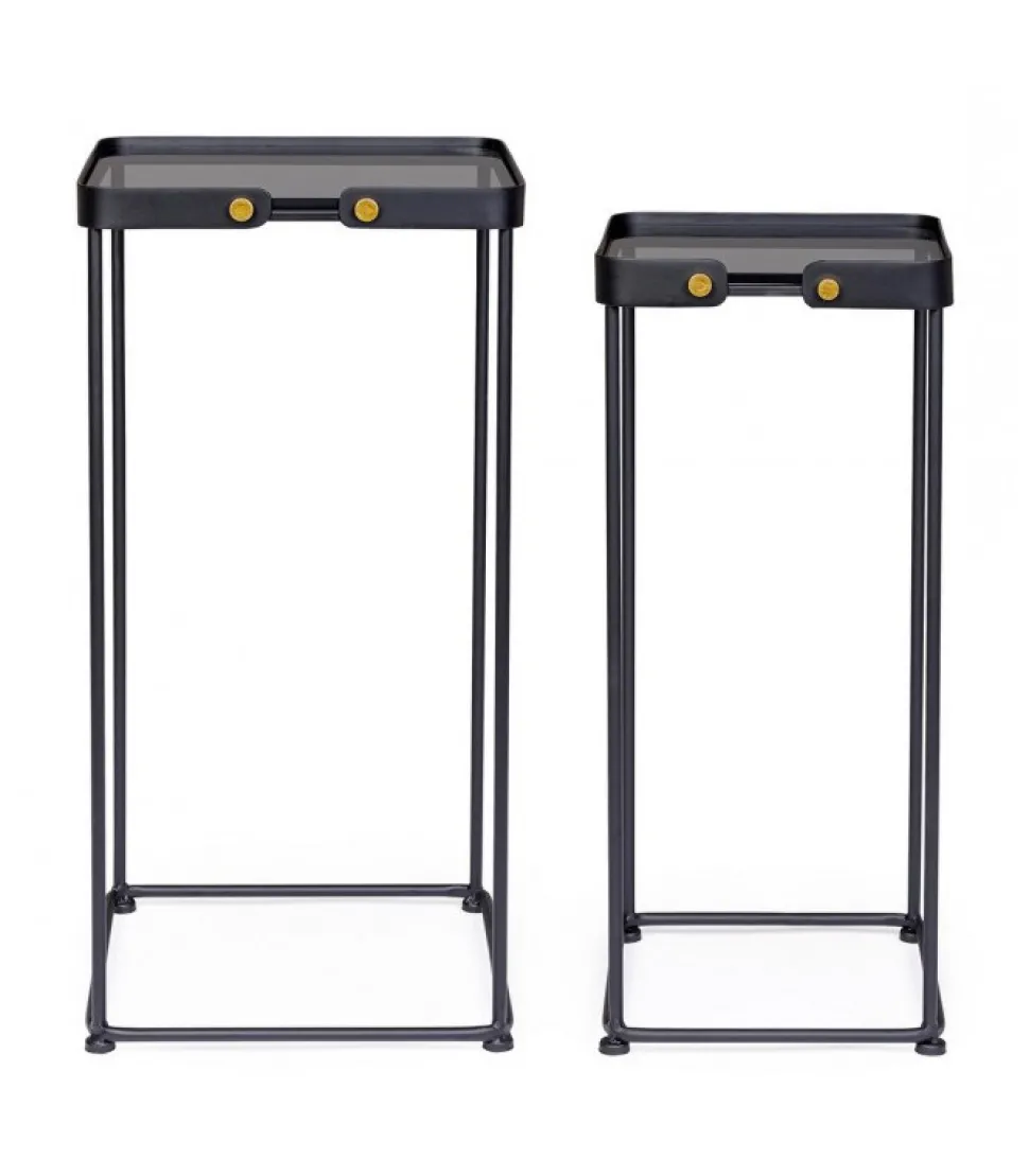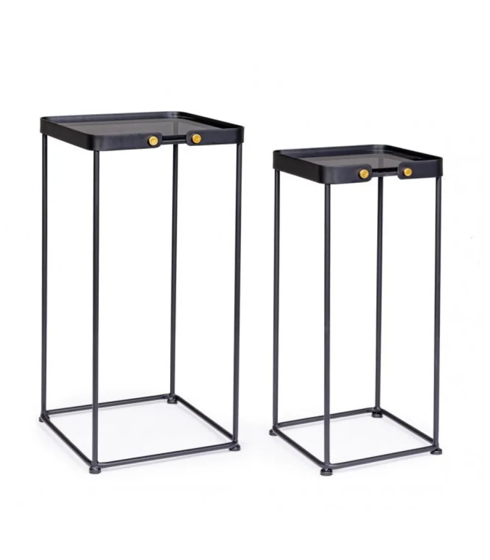 Set2 Tavolino Zeina Qu J90 Struttura In Acciaio, Verniciata A Polvere Epossidica. Piano In Vetro Temperato. – Dimensioni In Cm. 26 (L.) 25 (P.) 58.5 H; 32 (L.) 31 (P.) 63.5 H