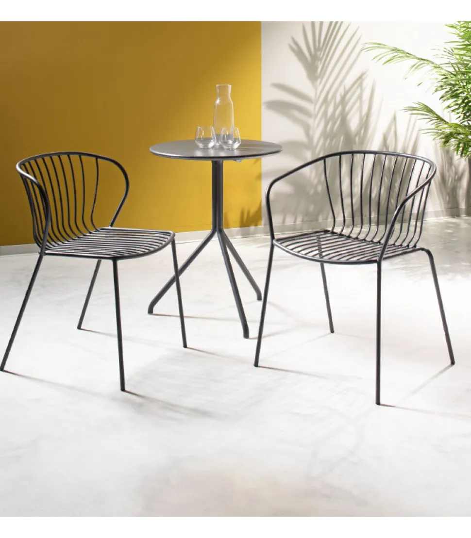 Sedia Amitha, Con Struttura In Metallo Verniciato Con Trattamento Per Esterno, Disponibile Con O Senza Braccioli.