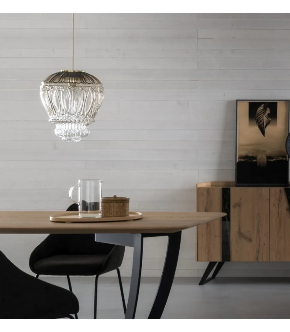 Lampadario Arabesque 6983/1 Di Mm Design. Lampadario In Vetro Soffiato Di Murano. Sorgente Luminosa: Lampadina Con Attacco E27 Potenza Massima Lampadina: 15W Led 220/240V Lampadina: Non Inclusa Dimensioni In Cm: 30X30X40