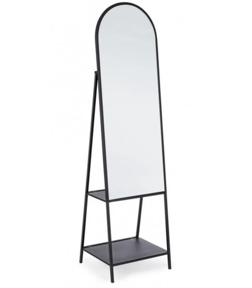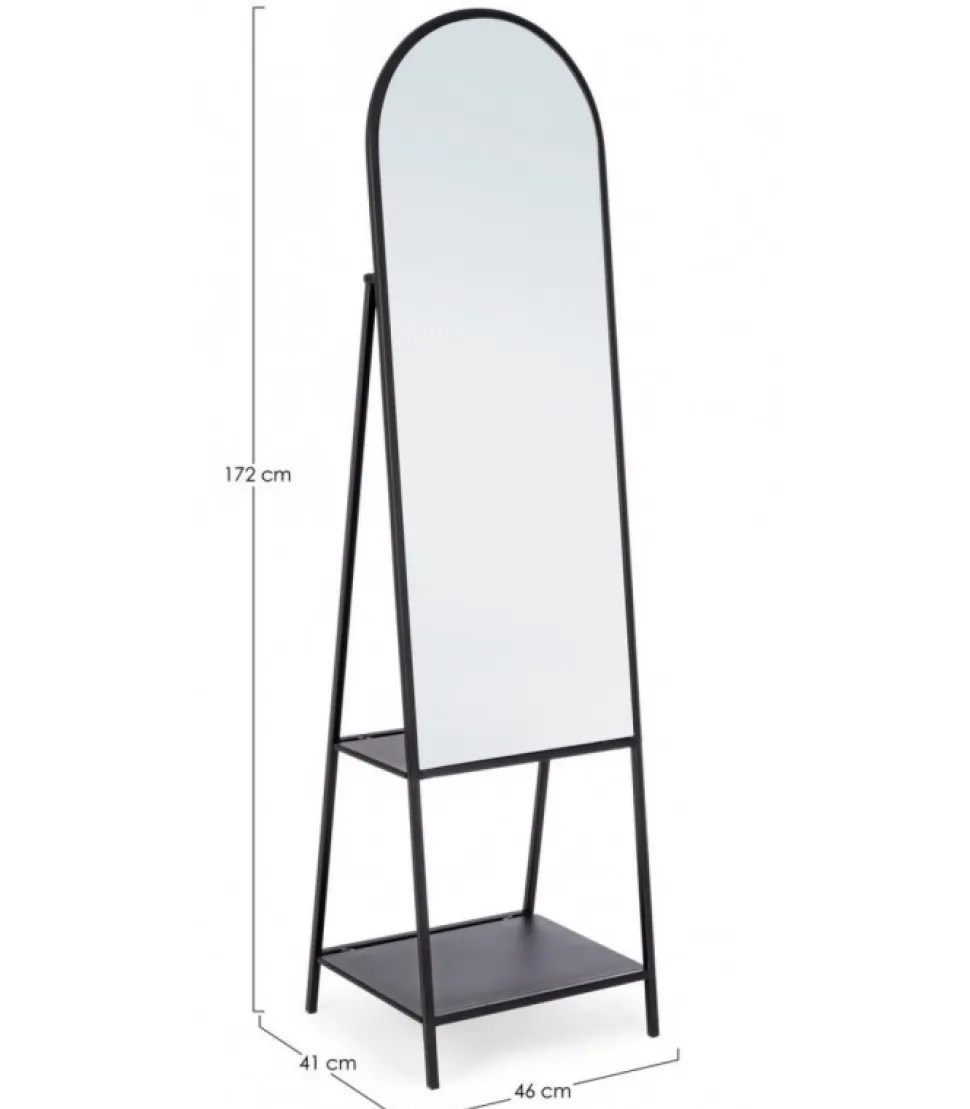 Specchio St. C-Ripiani Arin Nero Acciaio Verniciato A Polvere Epossidica,Vetro,Schienale In Mdf – Dimensioni In Cm. 46X41X172 H