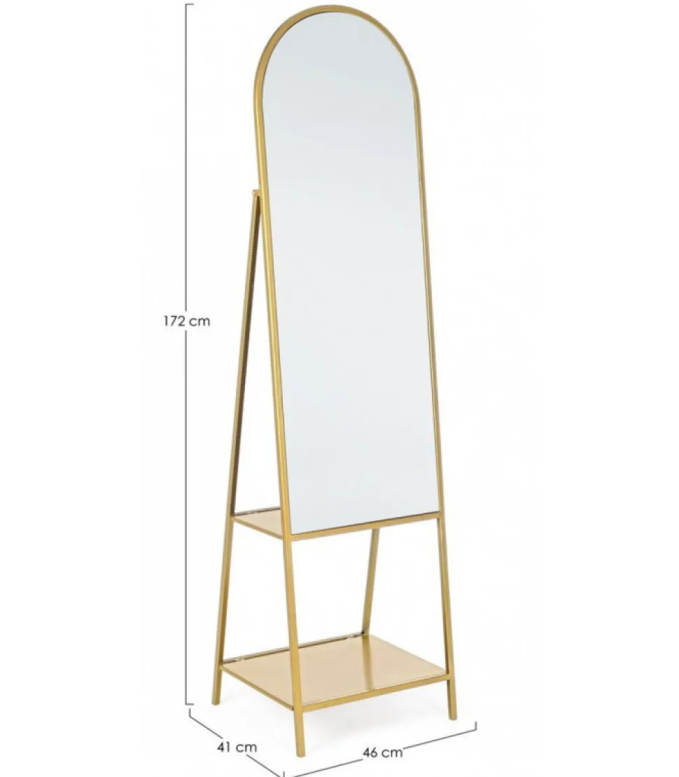 Specchio St. C-Ripiani Arin Oro Acciaio Verniciato A Polvere Epossidica,Vetro,Schienale In Mdf – Dimensioni In Cm. 46X41X172 H