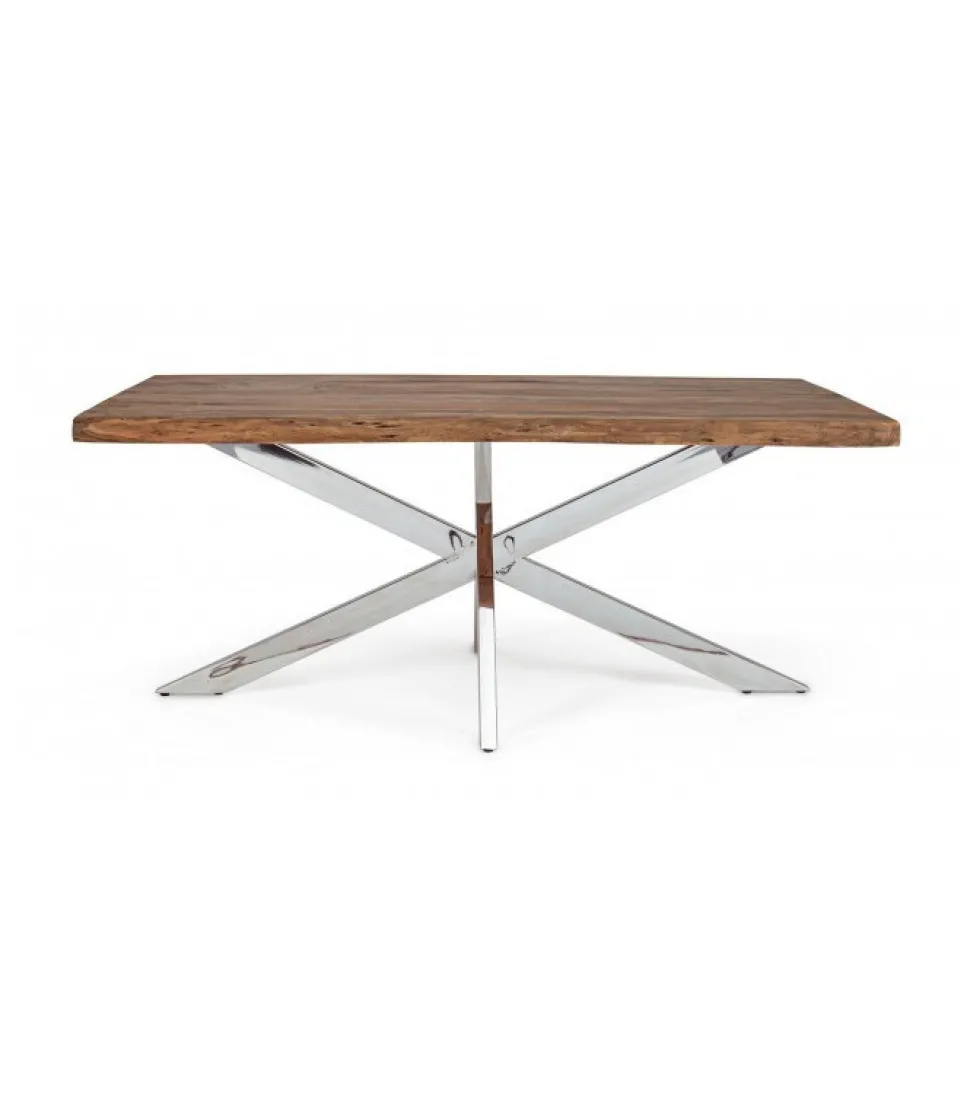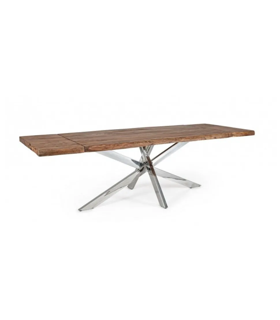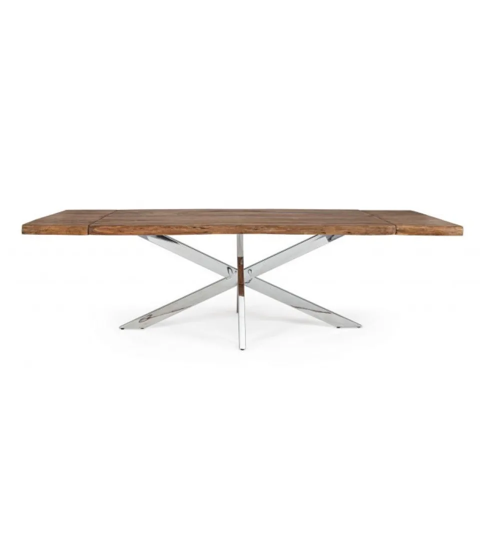 Tavolo All. Arkansas 180-260X90 Gambe In Acciaio Inossidabile, Piano In Legno D’Acacia (Sezioni Originali Di Tronco). Finitura Acrilica Protettiva. 2 Prolunghe Esterne Da 40Cm. Essendo Un Piano Lavorato A Mano, Le Forme E Le Misure Del Legno Sono Solo Indicative. Tutti I Prodotti Saranno Diversi L’Uno Dall’Altro. Gambe Da Assemblare. – Dimensioni In Cm. 180/260 (L.) 90 (P.) 77 H