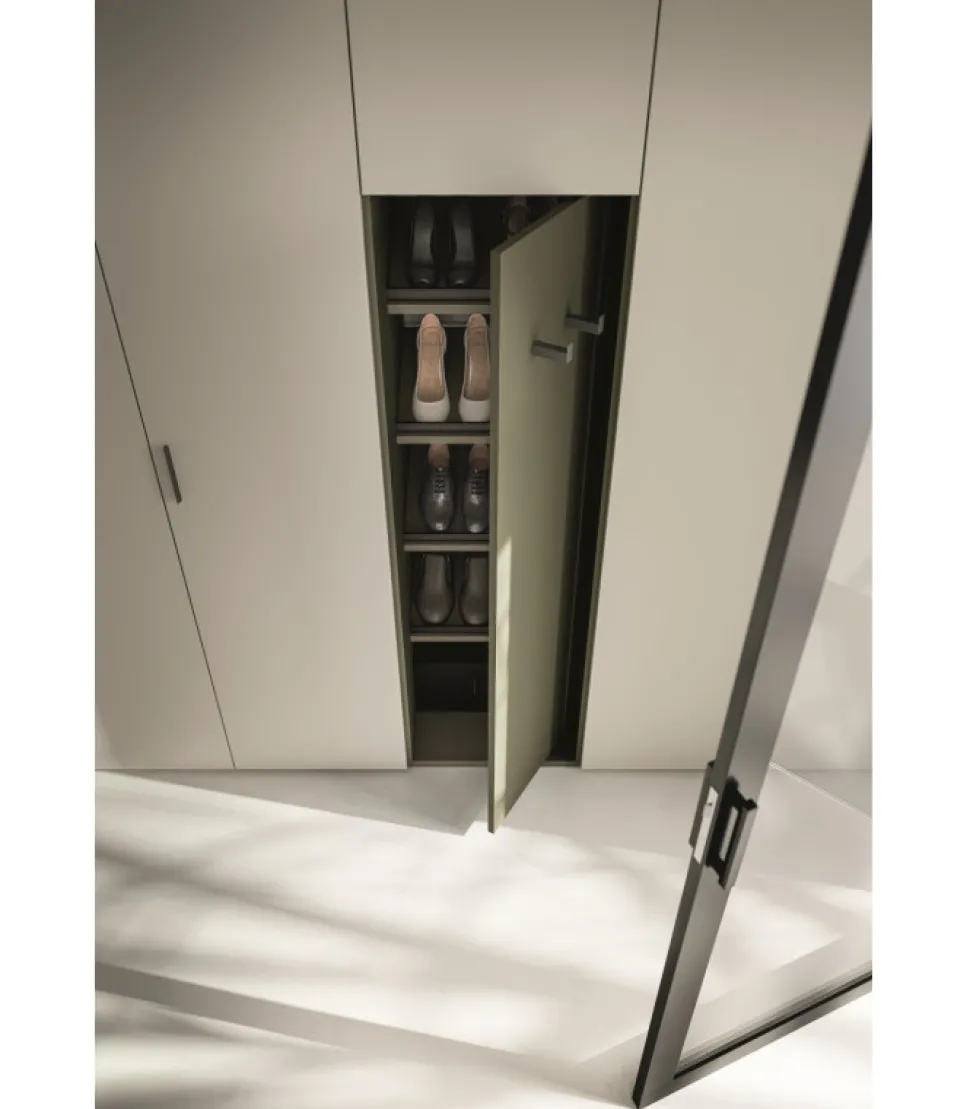 Come In Questo Caso, L’Anta Appendiabiti Che Nasconde Un’Utile Scarpiera.