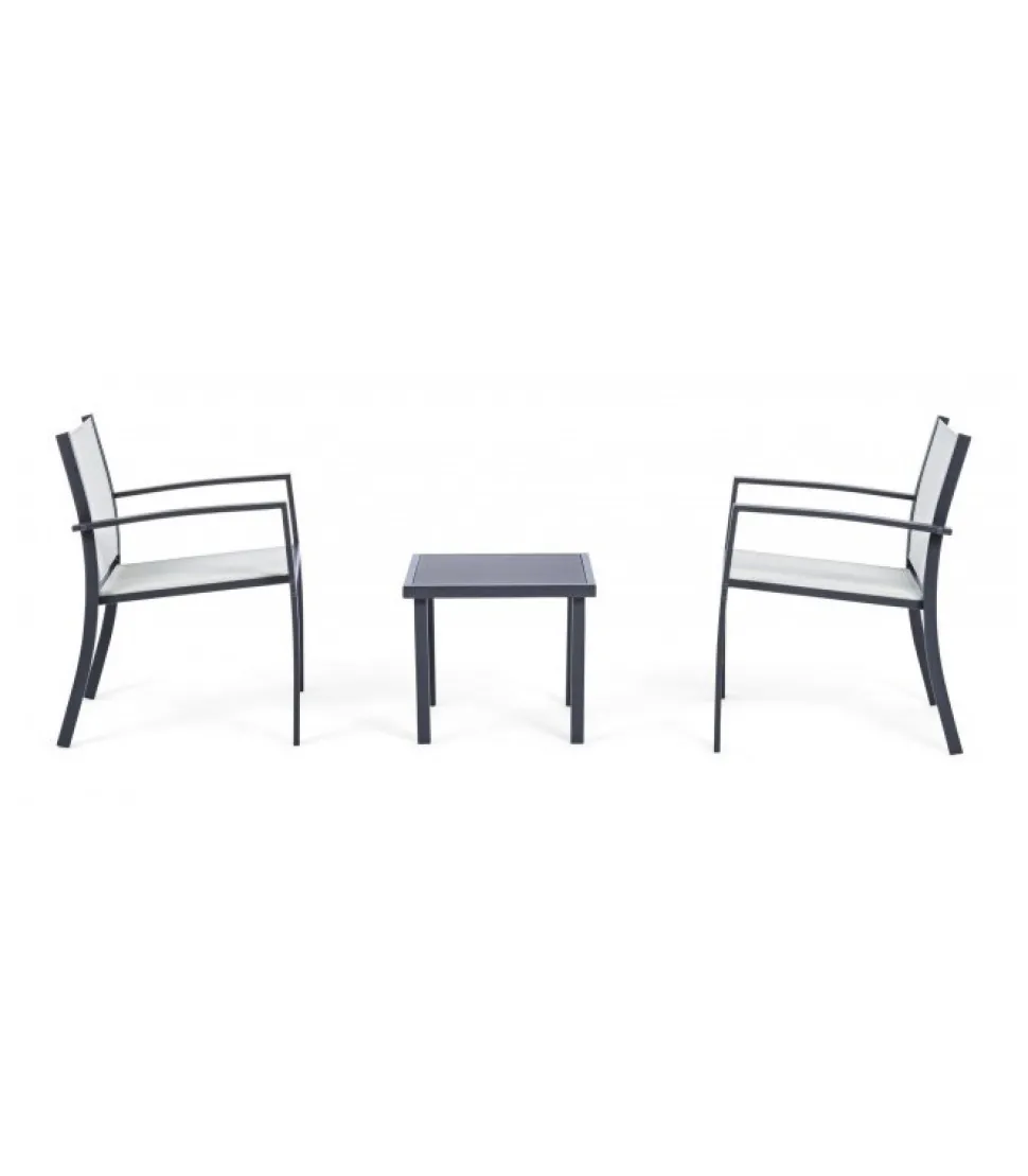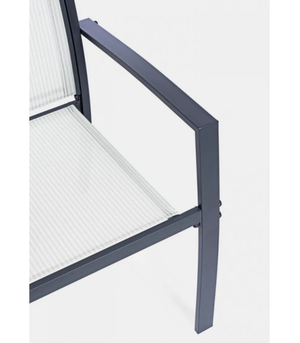 Set3 Salotto Auri Antracite Ja18 Struttura In Acciaio (Trattato Per Esterno Tramite Fosfatazione) Verniciato A Polvere (Poliestere), Seduta E Schienale In Textilene 2X1. Tavolino Con Vetro Temperato E Stampato. Viteria In Acciaio Galvanizzato. Da Assemblare. – Dimensioni In Cm. A 58 (L.) 58 (P.) 75 ( H.) 40 ( H1) – 58 ( H2) / A 58 (L.) 58 (P.) 75 ( H.) 40 ( H1) – 58 ( H2) / C 45 (L.) 45 (P.) 38 H