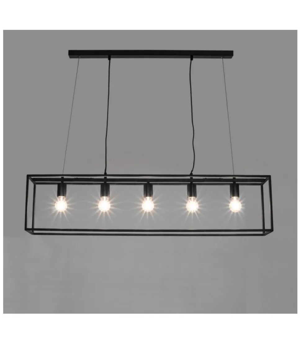 Lampadario Belleville 5Luci Acciaio Verniciato A Polvere Epossidica. Lamp. (5X)E27 Max 60W, E27 11W Comp. Fluor. Integr. Risp. En. , E27 42W Alog. Risp. En. Lampadina/E Non Inclusa/E. Lunghezza Cavo: 1.25 Mt. Da Assemblare – Dimensioni In Cm. 110X20X25 H