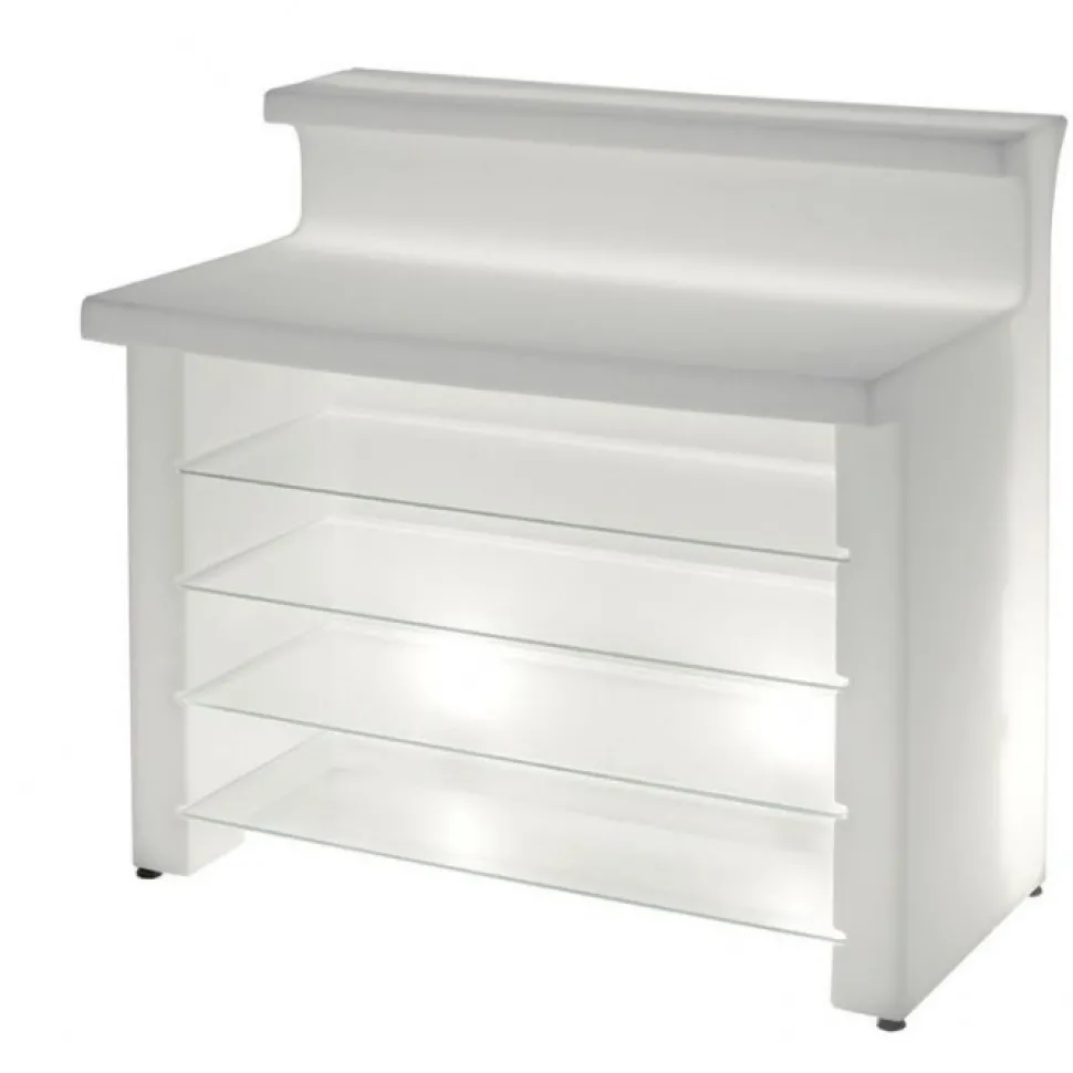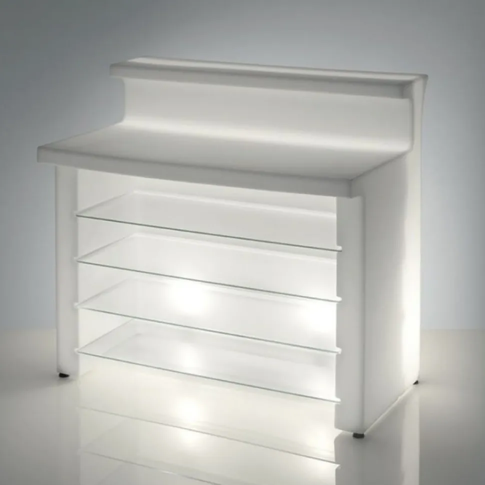 Break Line E La Creazione Firmata Slide Che Amplia La Collezione Dei Complementi D’Arredo Per Sistemi Espositivi. Modulare, Versatile E Innovativo, Break Line E Ideale Come Angolo Bar E Postazione Reception. Inoltre E Possibile Abbinarlo Con Break Bar, Break Corner E Ice Bar, Il Nuovo Modulo Luminoso Da Utilizzare Come Vaschetta Per Il Ghiaccio O Portabottiglie, Ottenendo Un Pratico E Completo Bancone Bar Utile Per Arredare Anche Gli Spazi Piu Piccoli, Senza Rinunciare Alla Magia Di Un Mobile Luminoso. Realizzato In Polietilene Mediante La Tecnica Dello Stampaggio Rotazionale, E Disponibile In Colore Bianco, Puo Essere Anche Personalizzato Con Loghi O Immagini Per Poter Ottenere Un Prodotto Unico E Di Facile Identificazione.