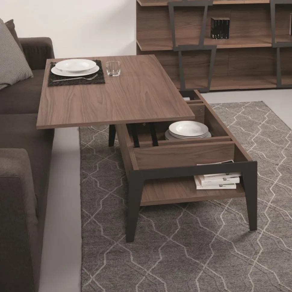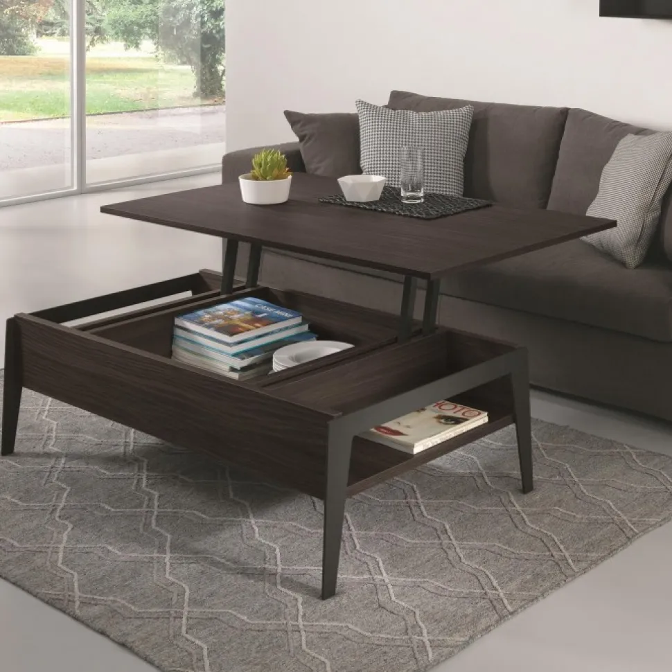 Brighton, Il Tavolino Da Salotto Multifunzione Con Piano Alzabile, Che Diventa Una Pratica Scrivania E Che Nasconde Al Suo Interno Diversi Vani Contenitore Sia A Vista Che Nascosti Sotto Al Piano.