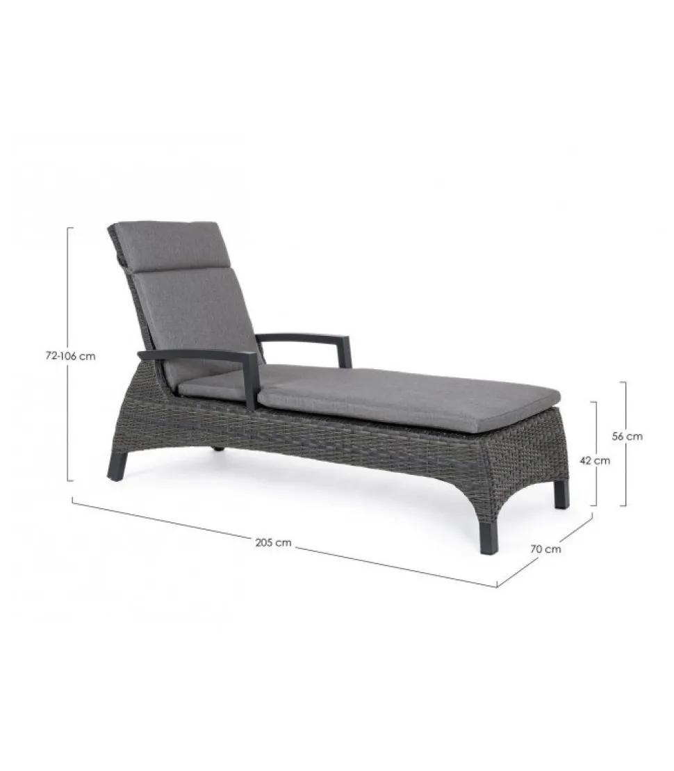 Lettino C-C Britton Antr Jx55 Struttura In Alluminio, Verniciata A Polvere (Poliestere), Intreccio In Fibra Sintetica (Muti-Misura). Schienale Reclinabile In Libera Posizione. Cuscini Sfoderabili Con Tessuto Olefin (100% Polipropilene). Schienale Da Assemblare. – Dimensioni In Cm. 70 (L.) 205 (P.) 72/106 ( H.) 42 ( H1) – 56 ( H2)