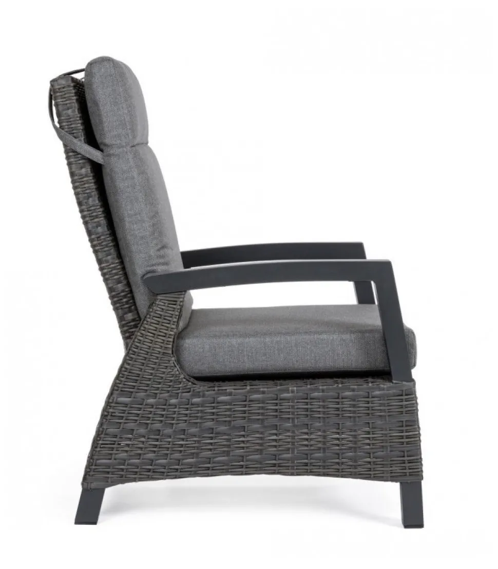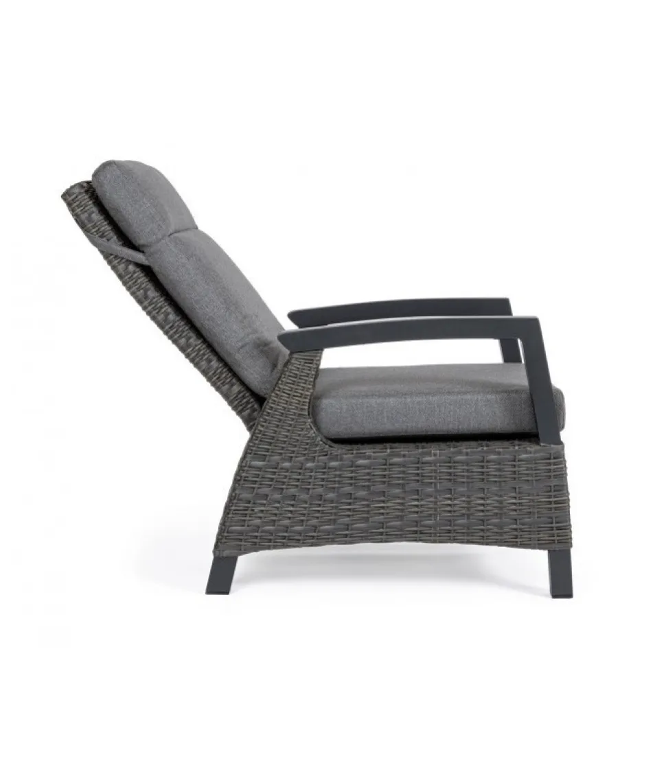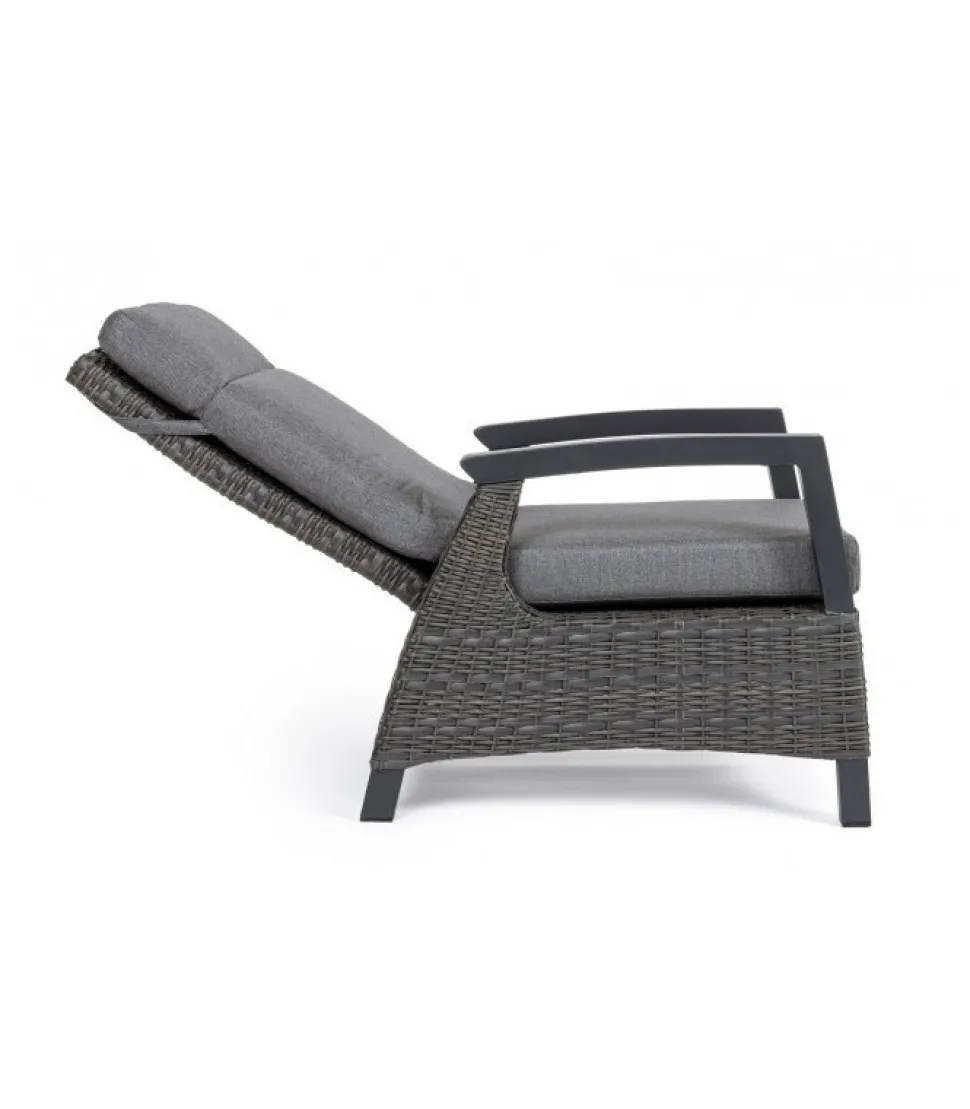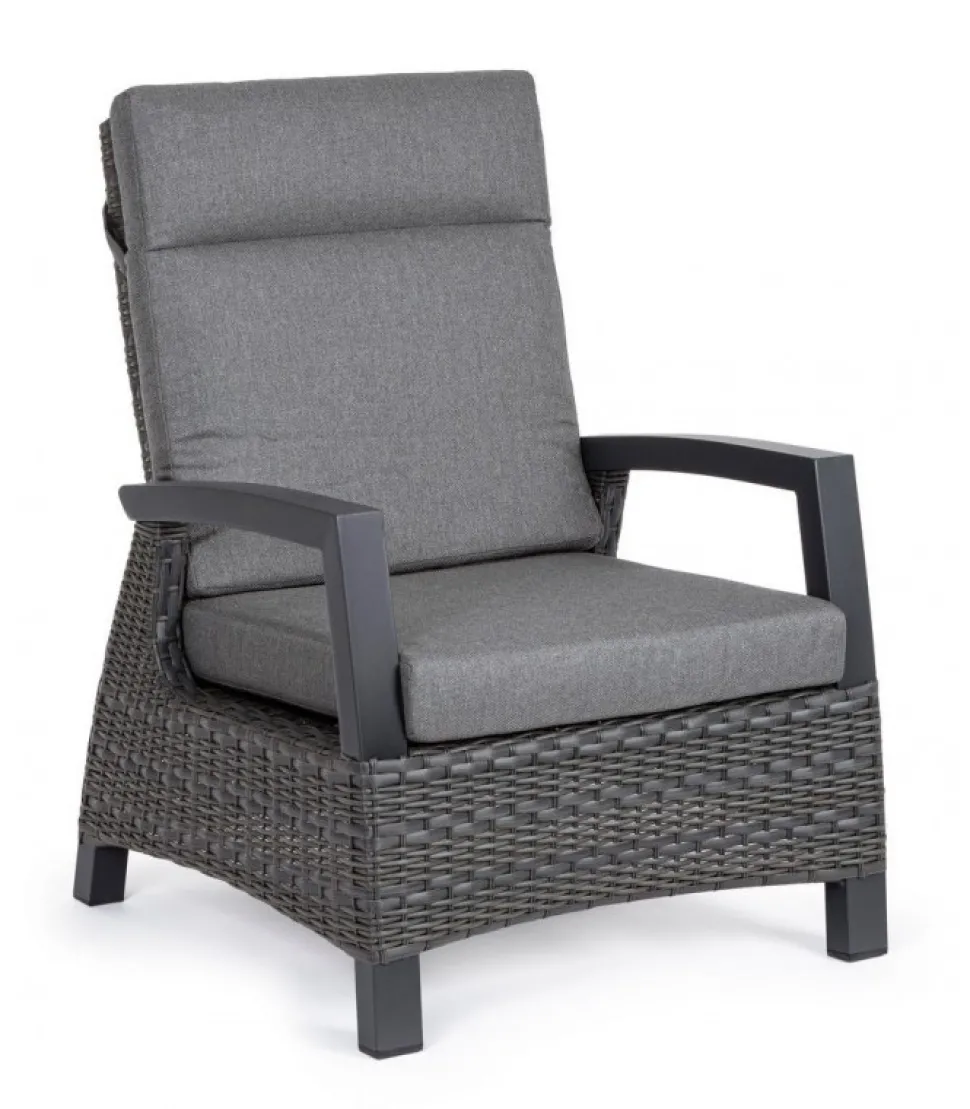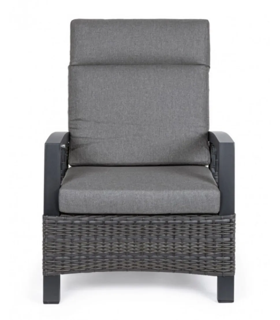 Poltrona Reclin C-C Britton Antr Jx55 Struttura In Alluminio, Verniciata A Polvere (Poliestere), Intreccio In Fibra Sintetica (Multi-Misura). Schienale Reclinabile In Libera Posizione. Cuscini Sfoderabili Con Tessuto Olefin (100% Polipropilene). Schienale Da Assemblare. – Dimensioni In Cm. 73 (L.) 83 (P.) 103 H – 44 ( H1) 61.5 H2