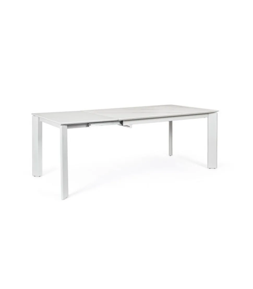 Tav All Briva Bianc-Grigio Ch 140-200X90 Struttura In Acciaio Verniciato A Polvere Epossidica. Piano In Ceramica (5 Mm) Con Supporto In Mdf (18 Mm). Prolunga In Mdf (21 Mm). Da Assemblare. – Dimensioni In Cm. 140/200 (L.) 90 (P.) 76 H
