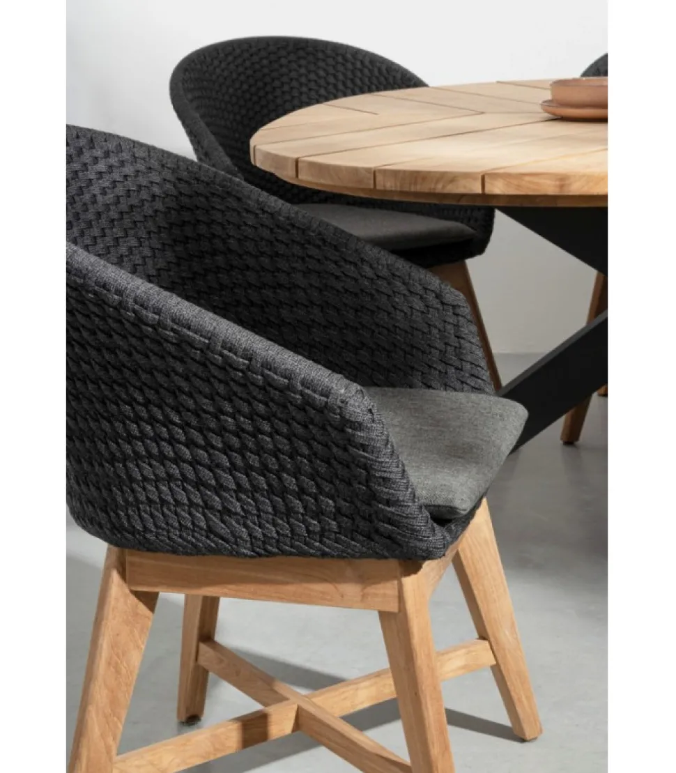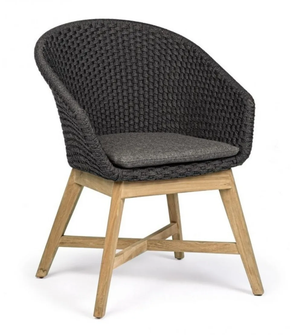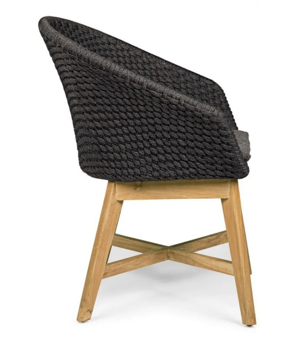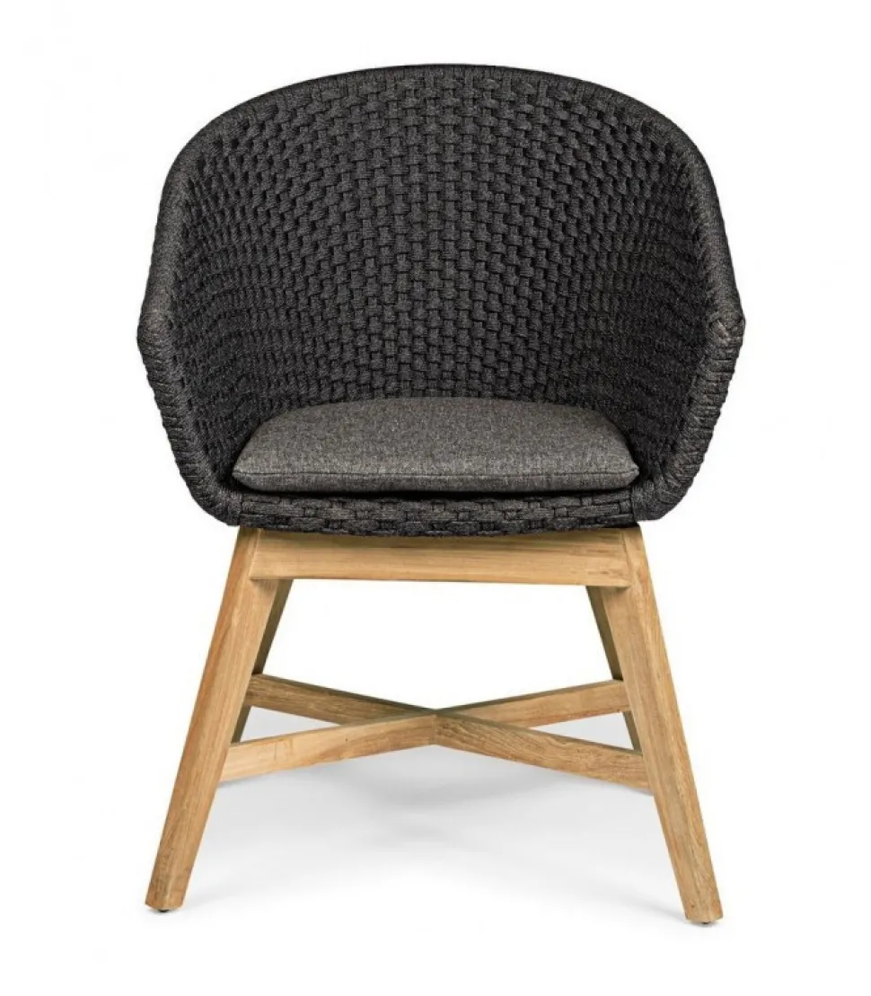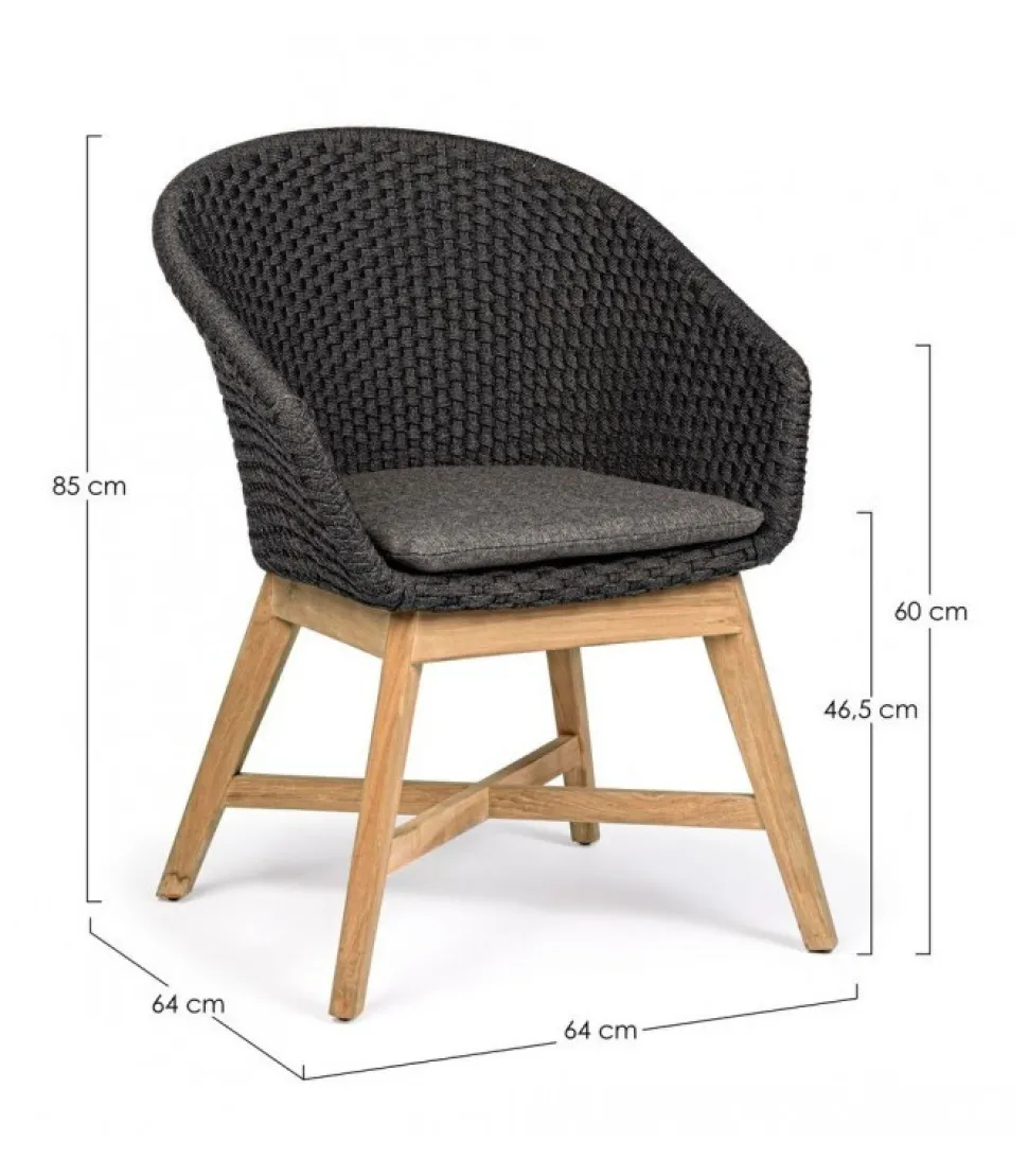 Sedia C-Br C-C Coachella Antracite Seduta Con Struttura In Alluminio Verniciata A Polvere (Poliestere). Intreccio In Corda Olefin (100% Polipropilene). Cuscino Seduta Sfoderabile Con Tessuto Sunproof Olefin (100% Polipropilene). Gambe In Teak – Svlk (Legno Certificato Proveniente Da Foreste Sostenibili). Viteria In Acciaio Galvanizzato. Gambe Da Assemblare. – Dimensioni In Cm. 64 (L.) 64 (P.) 85 ( H.) 46.5 ( H1) – 60 ( H2)