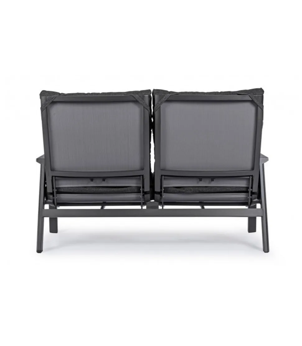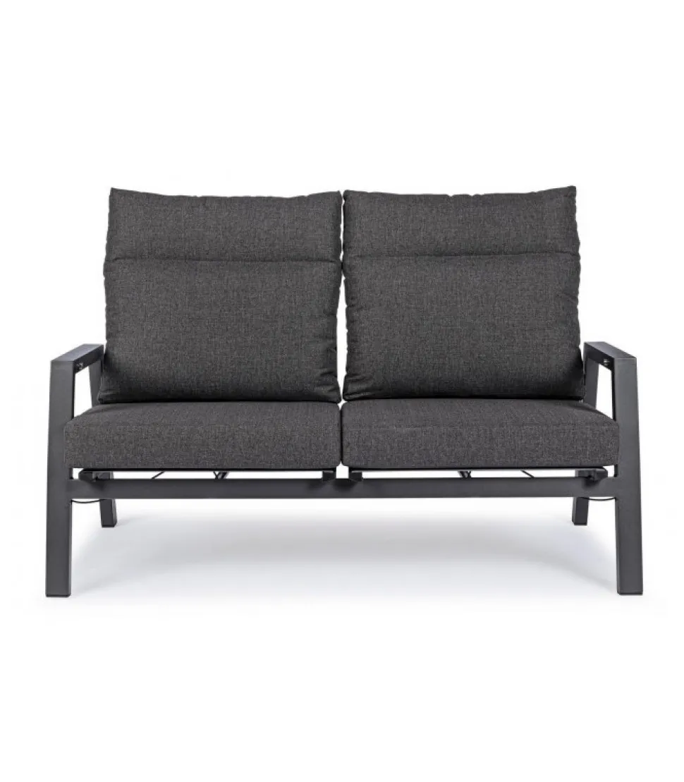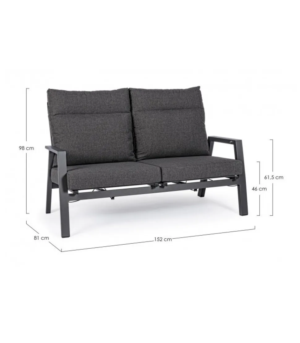 Divano 2P Recl C-C Kledi Antracite Jx55 Struttura In Alluminio Verniciata A Polvere (Poliestere). Schienale Reclinabile In Libera Posizione E Seduta In Textilene 1X1. Cuscini Sfoderabili Con Tessuto Olefin (100% Polipropilene). – Dimensioni In Cm. 152 (L.) 81 (P.) 98 H – 46 ( H1) 61.5 H2