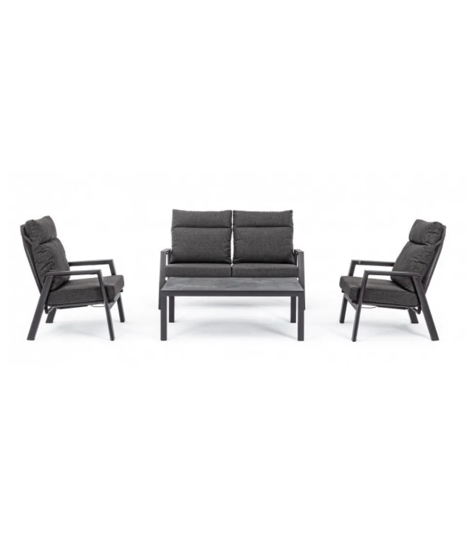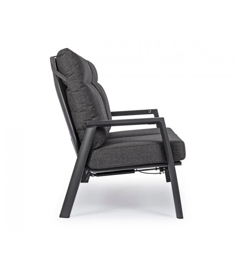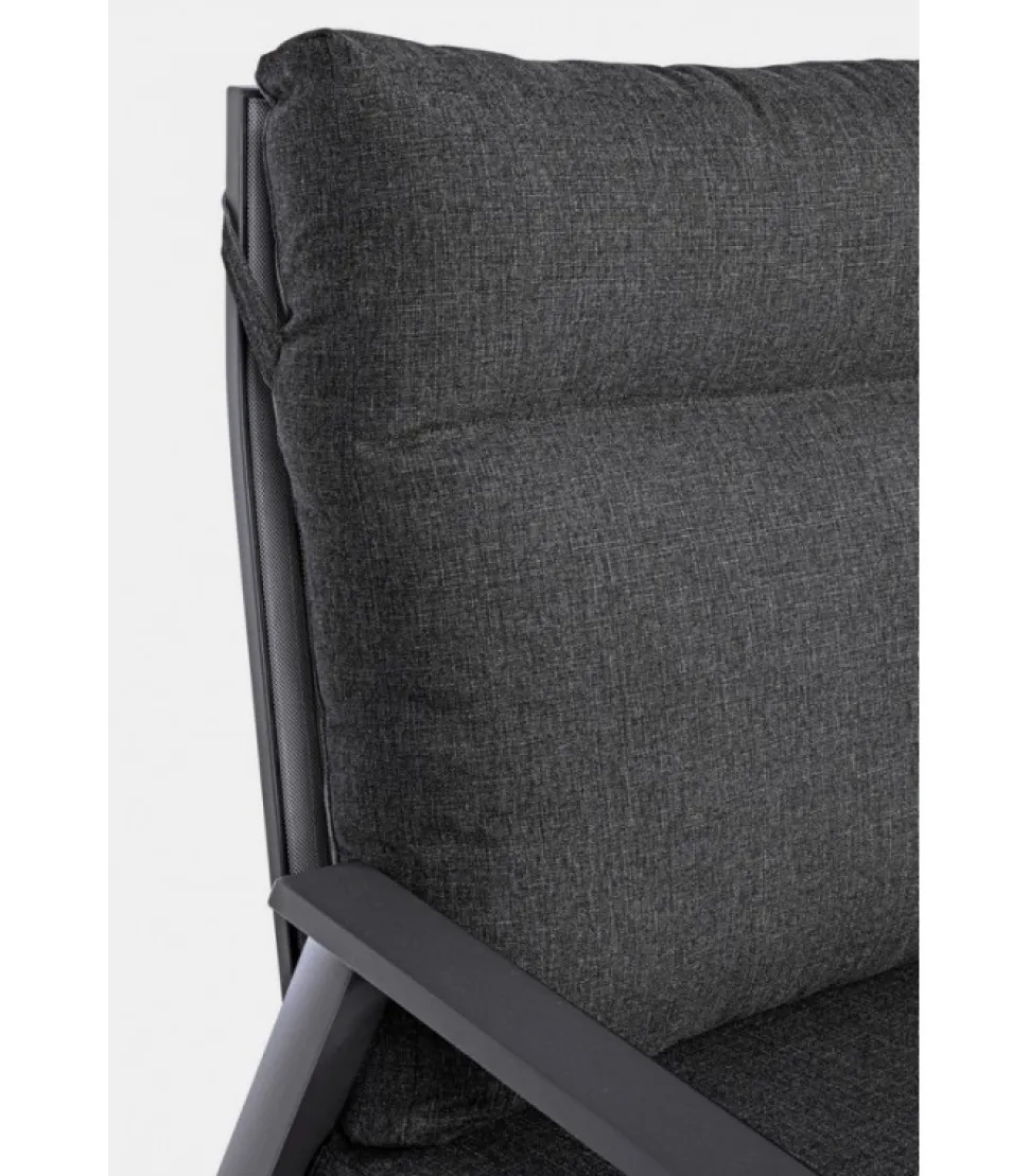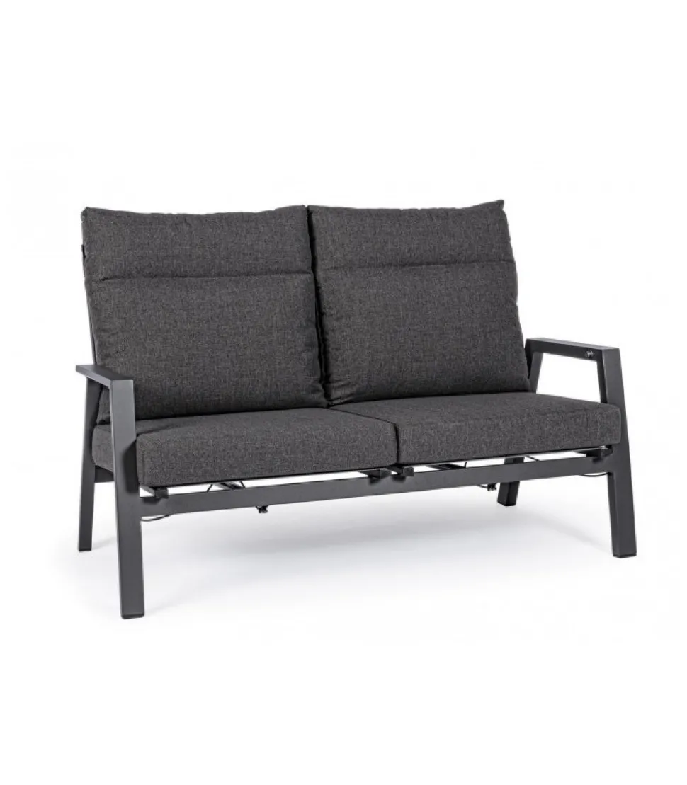 Divano 2P Recl C-C Kledi Antracite Jx55 Struttura In Alluminio Verniciata A Polvere (Poliestere). Schienale Reclinabile In Libera Posizione E Seduta In Textilene 1X1. Cuscini Sfoderabili Con Tessuto Olefin (100% Polipropilene). – Dimensioni In Cm. 152 (L.) 81 (P.) 98 H – 46 ( H1) 61.5 H2