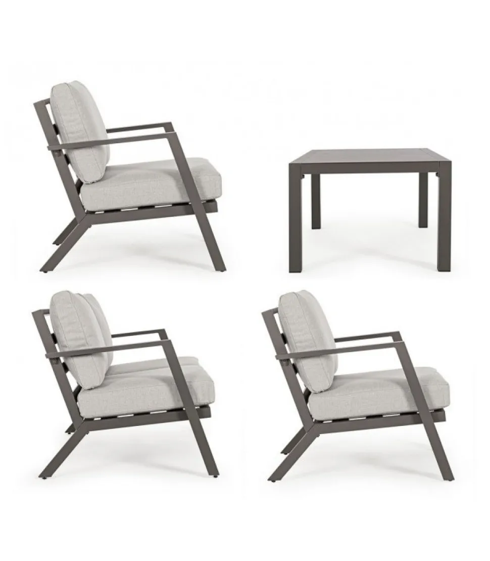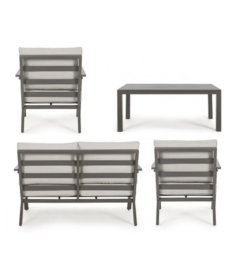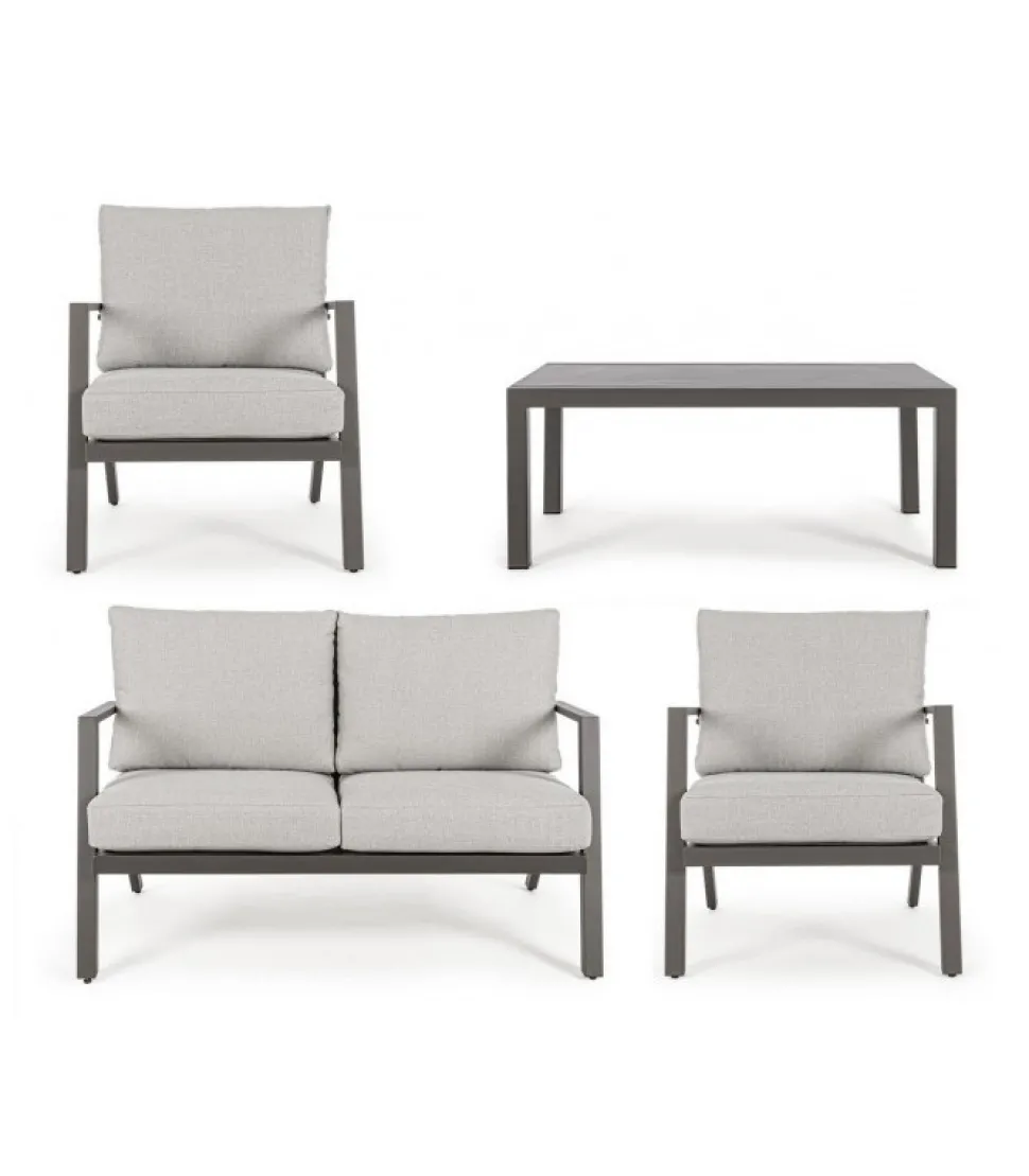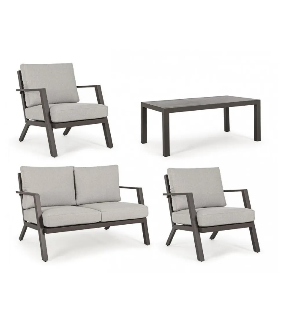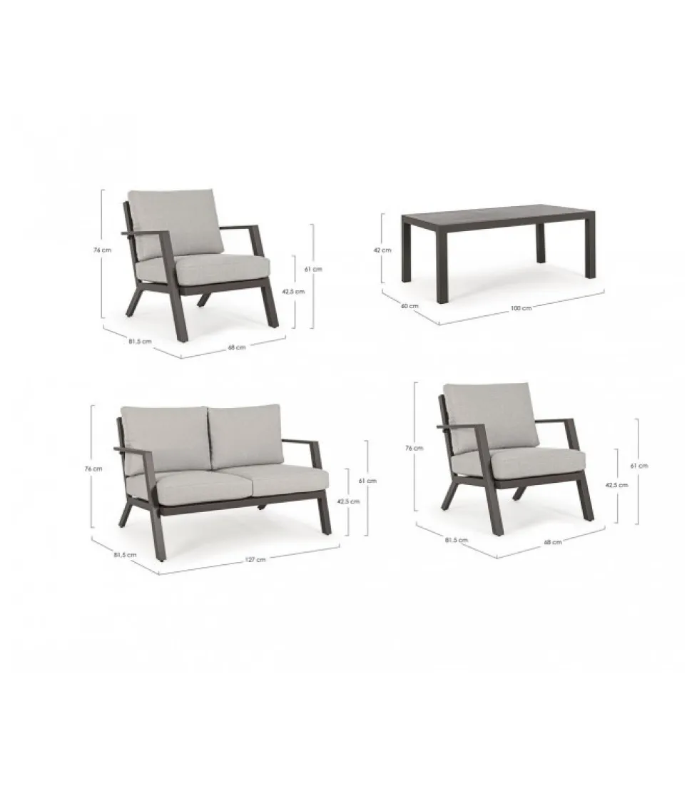 Set4 Salotto C-C Harley Coffee Yk14 Alluminio Verniciato A Polvere (Poliestere). Cuscini Seduta E Schienale Sfoderabili Con Tessuto Olefin (100% Polipropilene). Piedini Regolabili. Viteria In Acciaio Inossidabile. Da Assemblare. – Dimensioni In Cm. A 68 (L.) 81.5 (P.) 76 H – 42.5 ( H1) 61 H2 / B 127 (L.) 81.5 (P.) 76 H – 42.5 ( H1) 61 H2 / C 100 (L.) 60 (P.) 42 H
