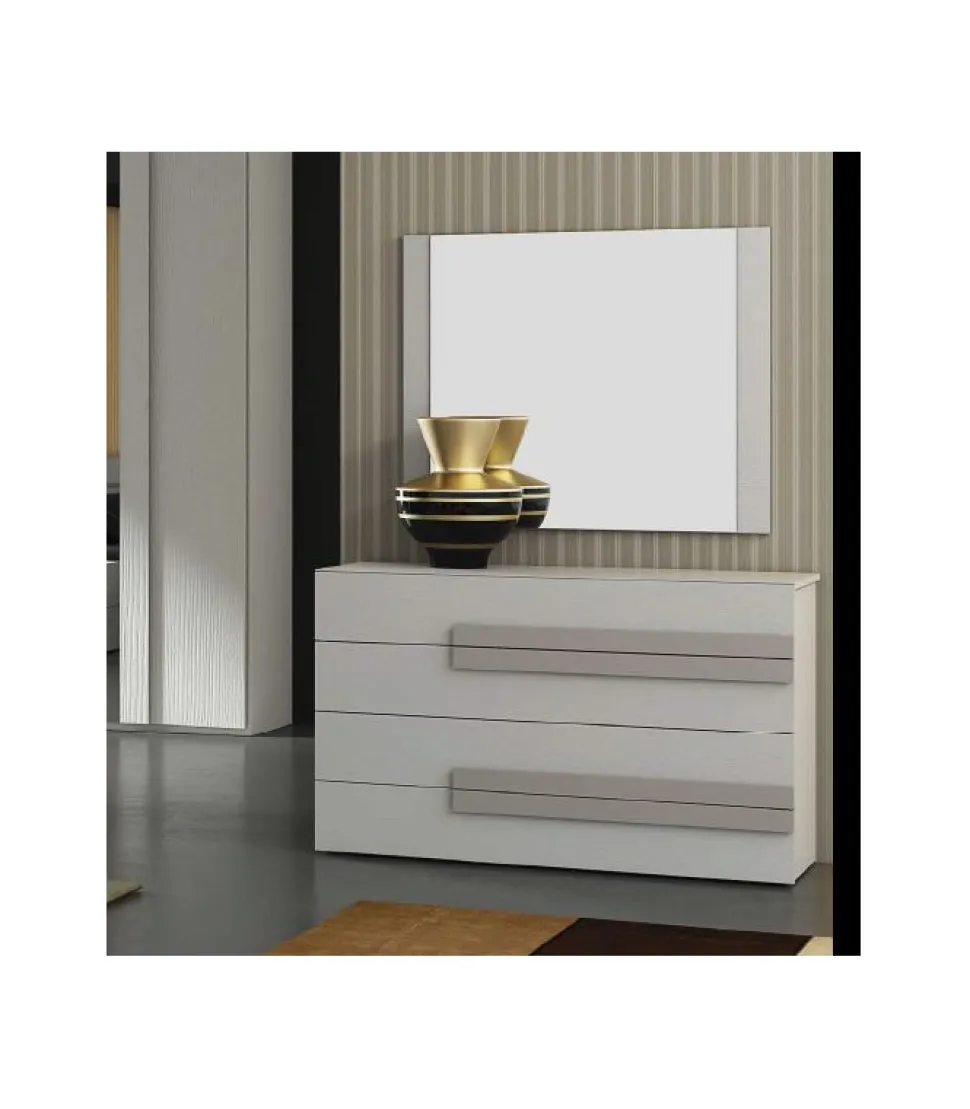 Larice Bianco Con Maniglie Ed Inserto Letto Tortora.