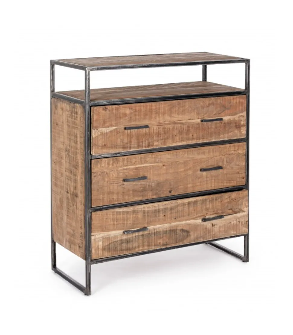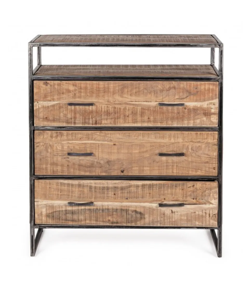 Cassettiera 3C Elmerstruttura In Legno D’Acacia E Acciaio Verniciato A Polvere Epossidica, Schienale In Compensato- Finitura Acrilica Protettiva.Dimensioni:90(L) – 40(P) – 105(H)