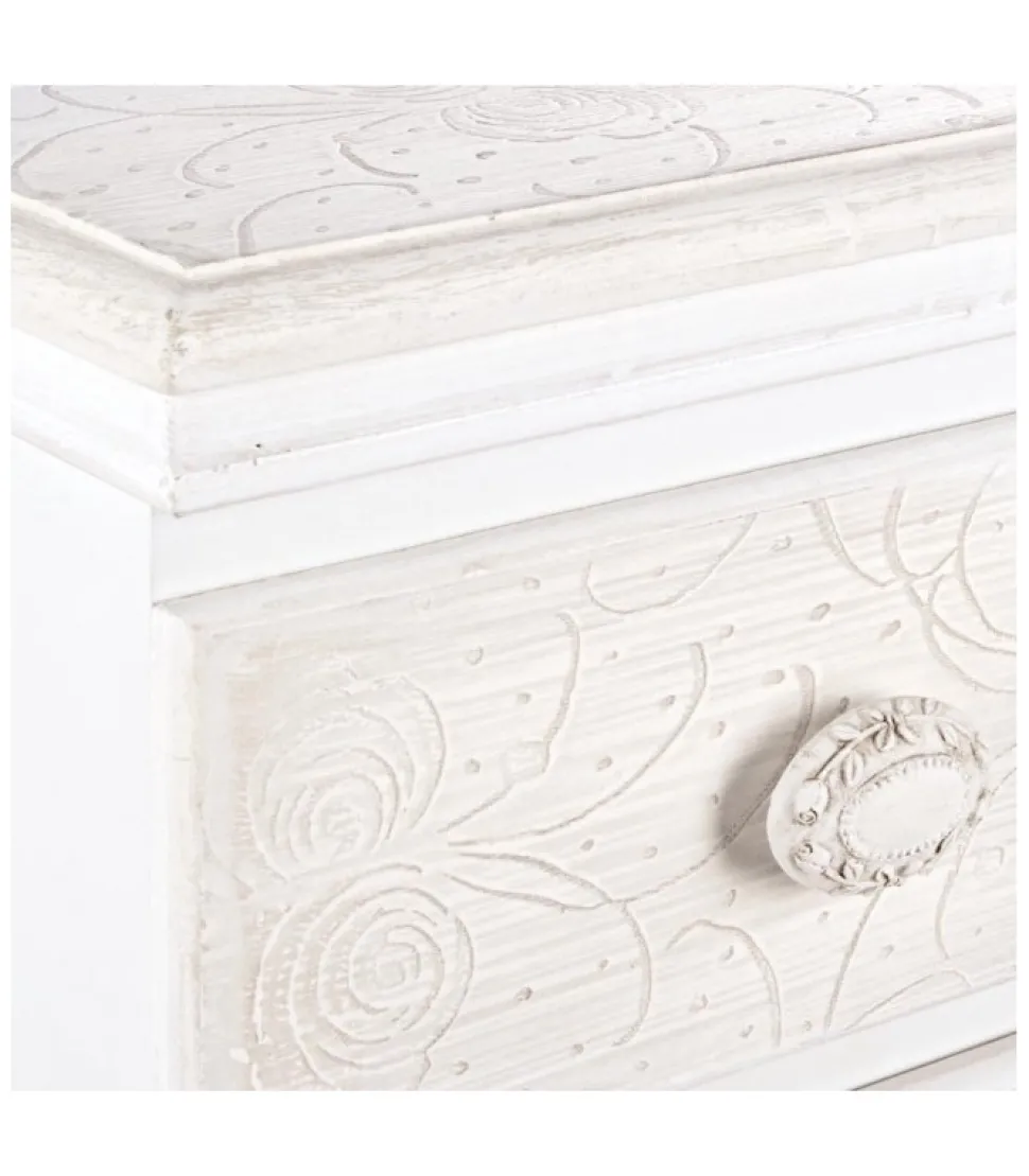 Struttura In Mdf. Ripiani E Frontali Con Motivi Floreali Intarsiati. Rifinitura Con Vernice Opaca A Base D’Acqua. Maniglie In Poliresina.