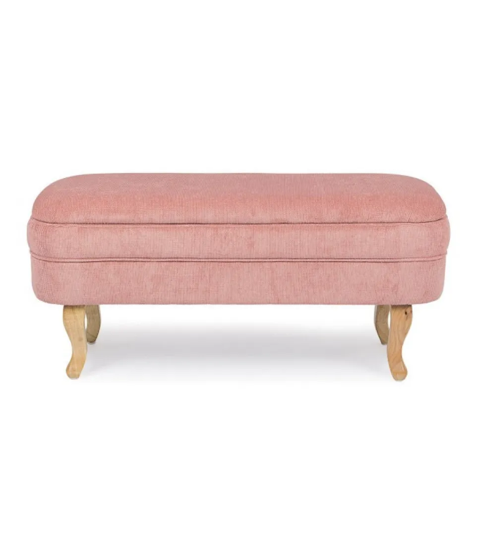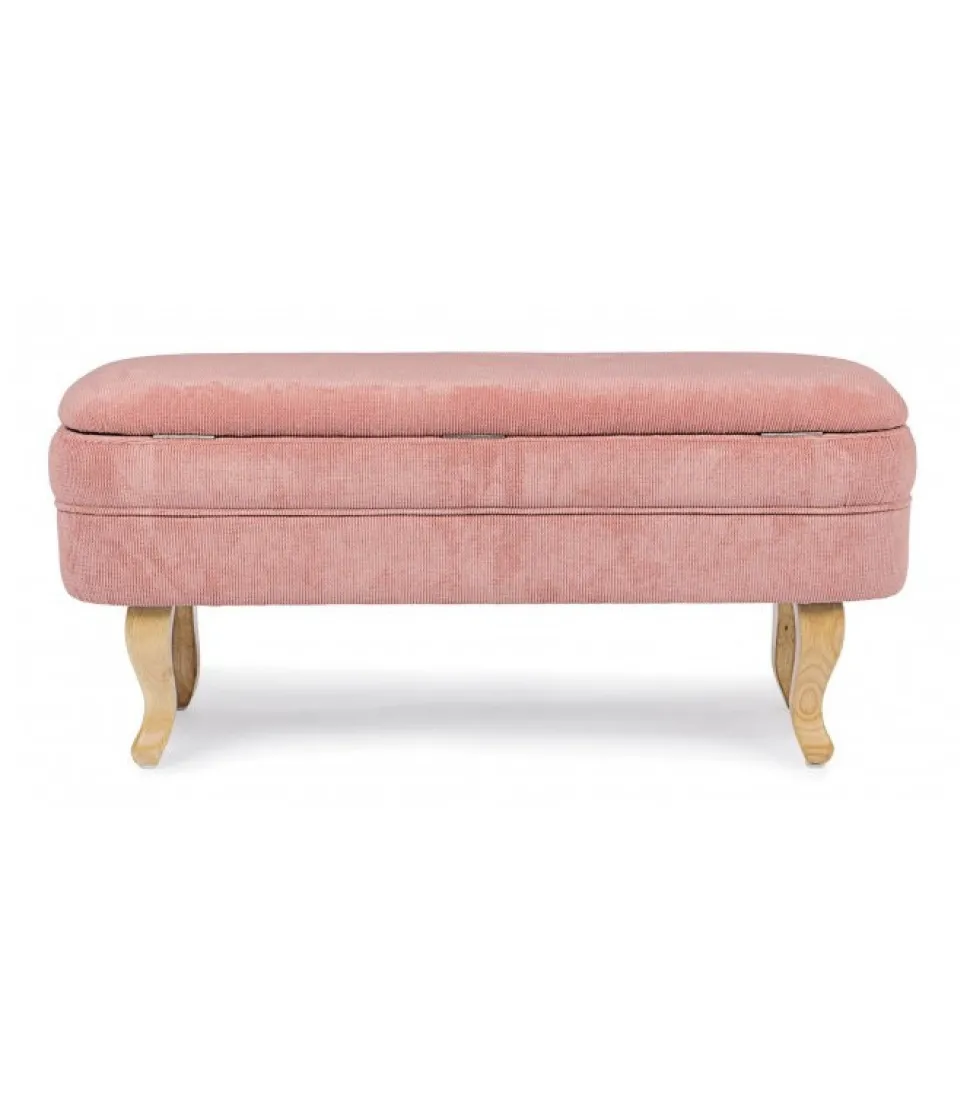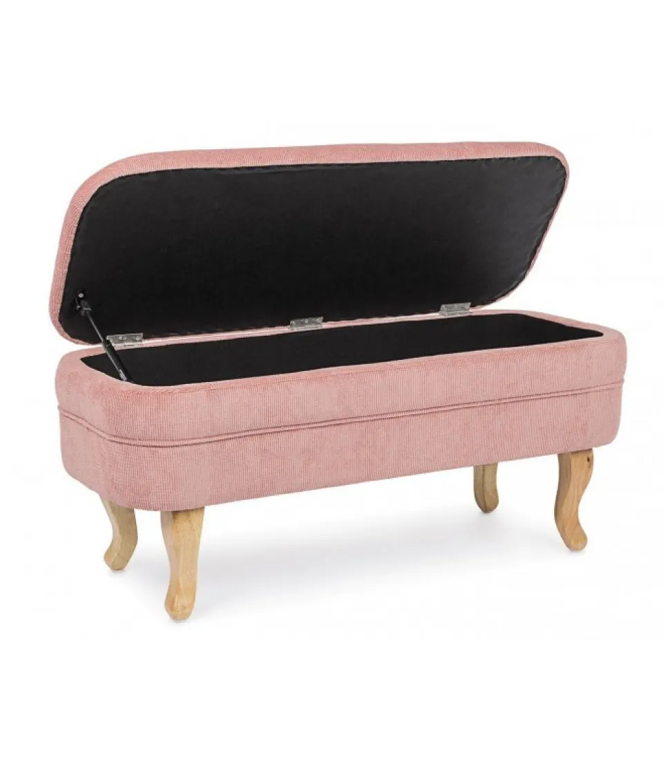Panca Contenitore Chenille Rosa Struttura In Legno Di Pino E Compensato. Gambe In Rubberwood. Rivestimento In Poliestere Effetto Velluto A Coste. Densita’ Imbottitura In Schiuma Poliuretanica 25 Kg/M3. Non Sfoderabile. Apertura Con Pistone. Gambe Da Assemblare. – Dimensioni In Cm. 102 (L.) 41 (P.) 49 H