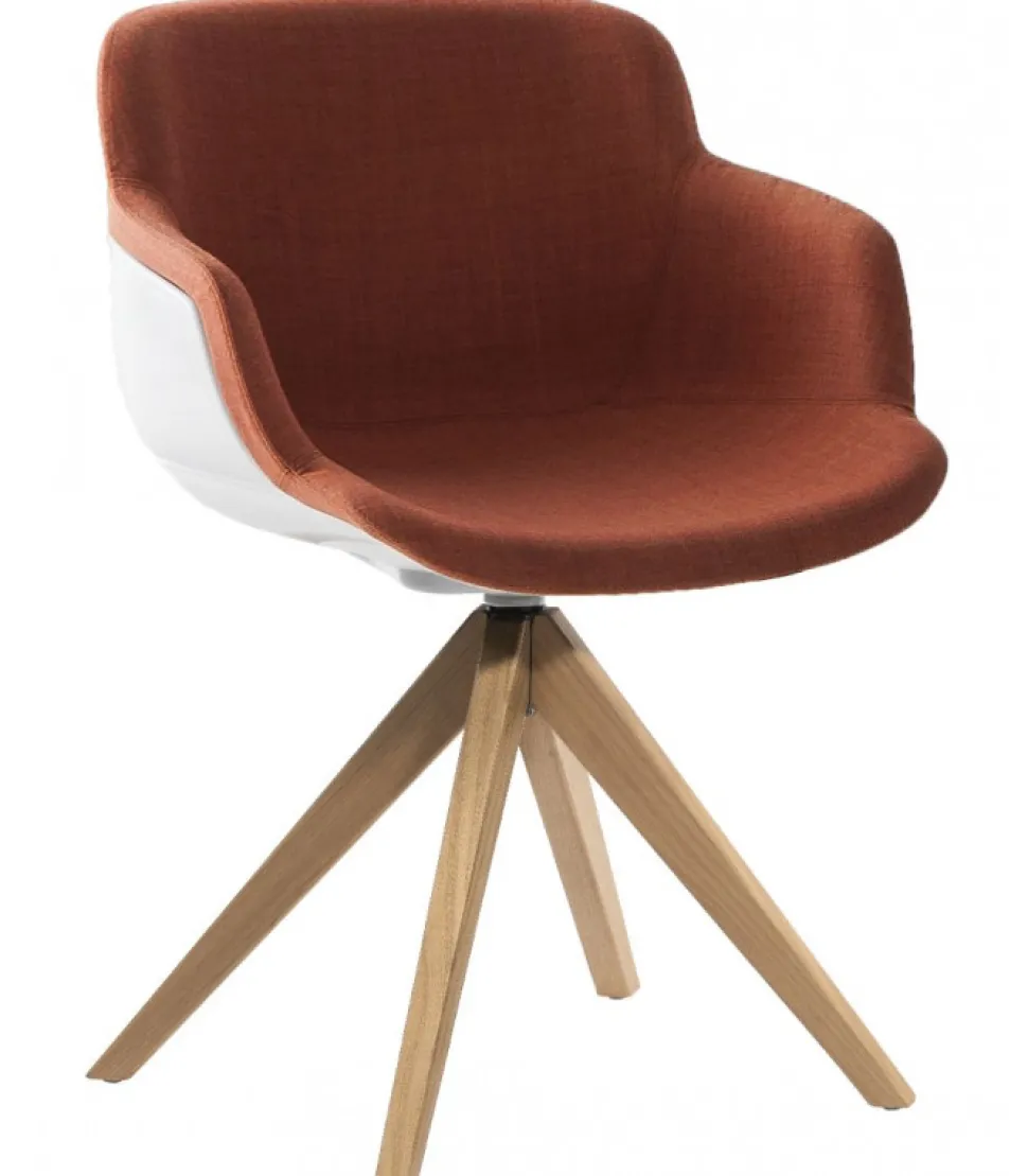 Sedia Choppy Sleek Pl Con Struttura In Rovere Massello Con 4 Razze Rinforzate Con Struttura Interna In Acciaio. Seduta Girevole In Tecnopolimero Rivestita. Disponibile In Molti Colori.