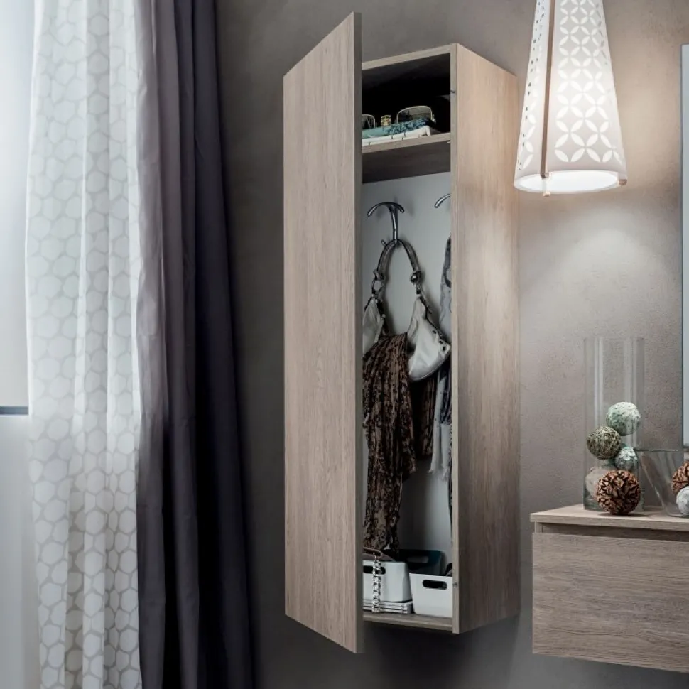 Composizione 632 Per L’Ingresso Ma Anche Per La Zona Living, Giacche E Borse Trovano Facilmente Posto Nel Pratico Ed Elegante Armadio Guardaroba Sospeso Senza Trascurare La Praticita Della Base Con Cassetto.