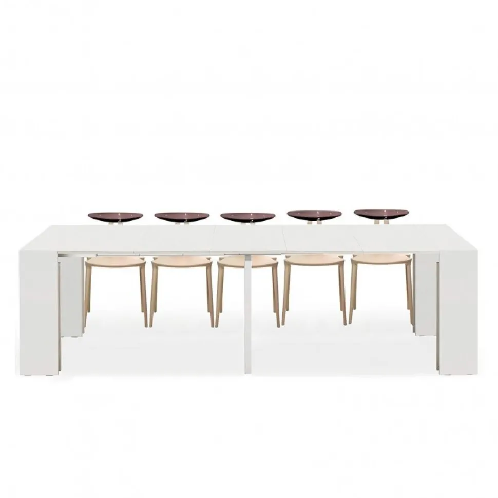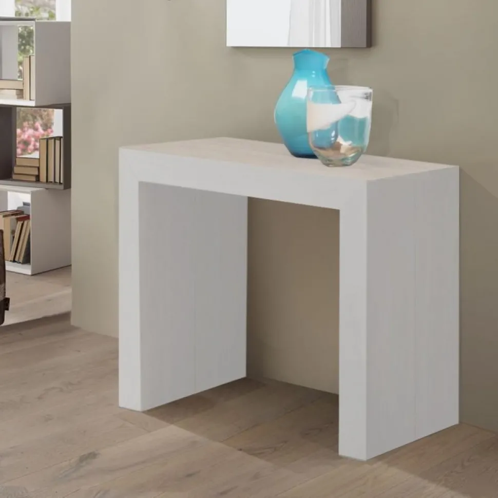 Piccola E Discreta Consolle Salva Spazio, Che Misura Solo 45 Cm. Di Profondita, Si Allunga Con Pochi Gesti E Diventa Un Solido Tavolo Di 3 Metri Che Puo Ospitare Fino A 12 Persone.