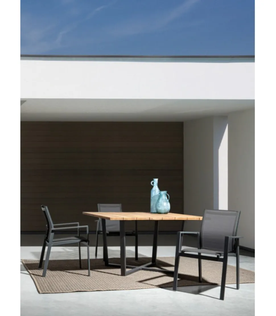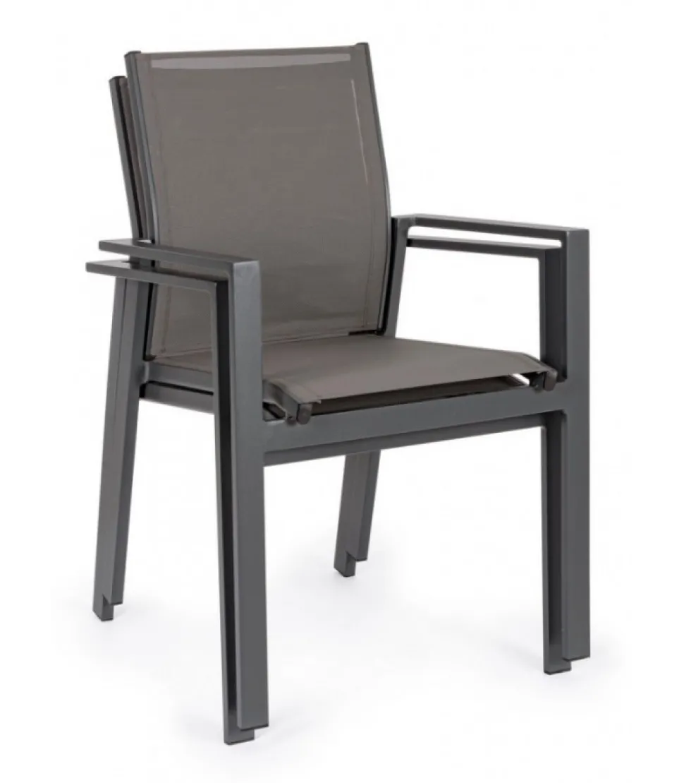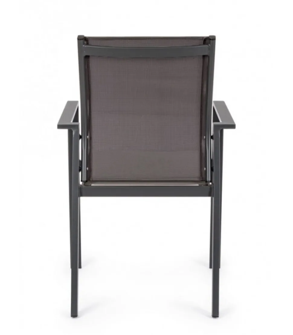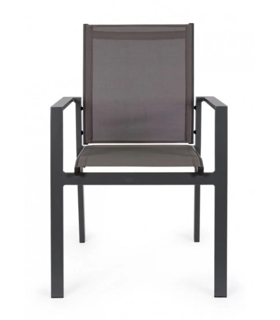 Sedia C-Br Crozet Dark Antracite Sj61 Struttura In Alluminio, Verniciato A Polvere (Poliestere). Rivestimento Seduta E Schienale In Textilene 2X2. Impilabile. – Dimensioni In Cm. 56.5 (L.) 62 (P.) 88 ( H.) 44.5 ( H1) – 63 ( H2)