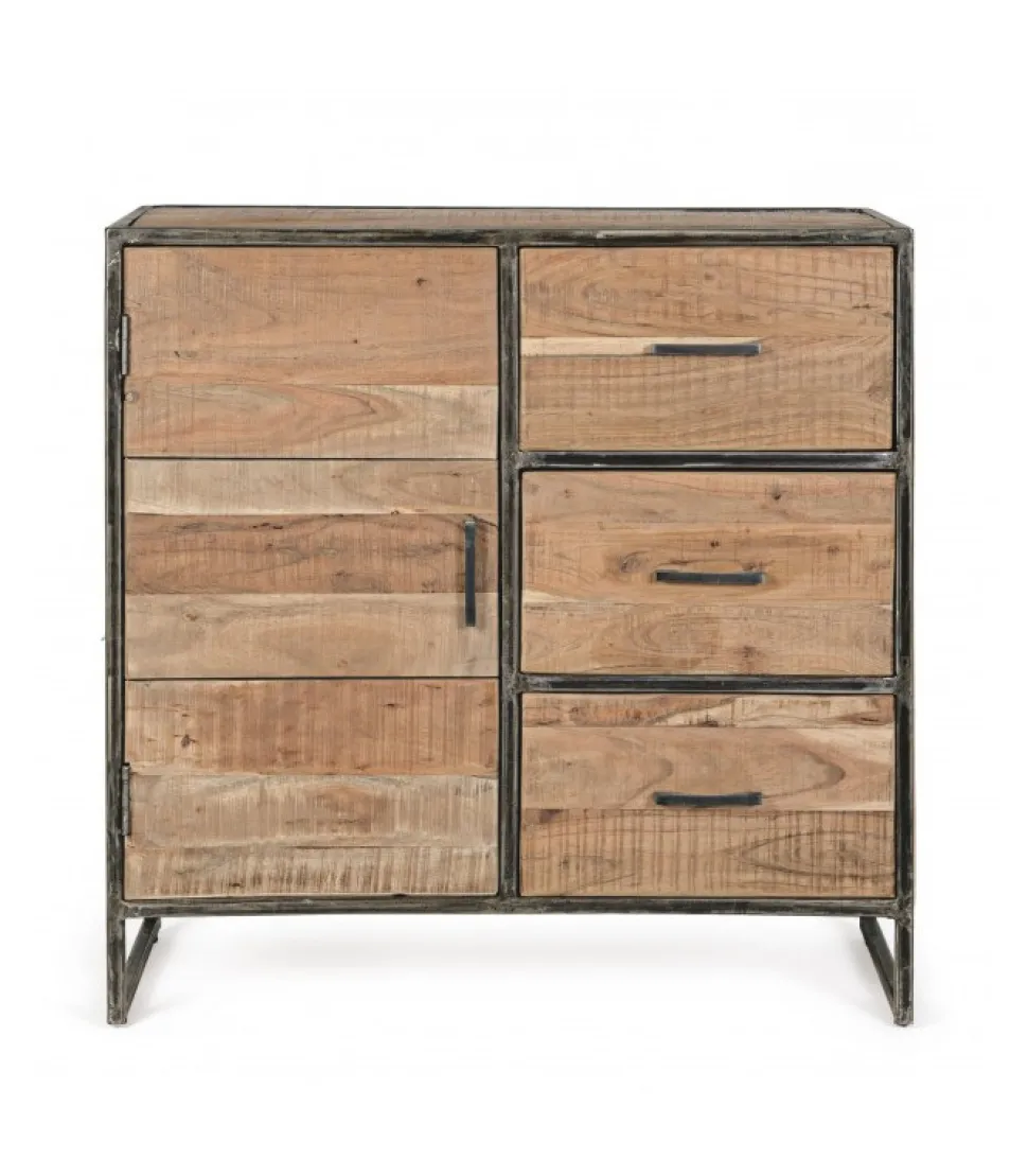 Credenza 1A-3C Elmerstruttura In Legno D’Acacia E Acciaio Verniciato A Polvere Epossidica, Schienale In Compensato- Finitura Acrilica Protettiva.Dimensioni:90(L) – 40(P) – 90(H)