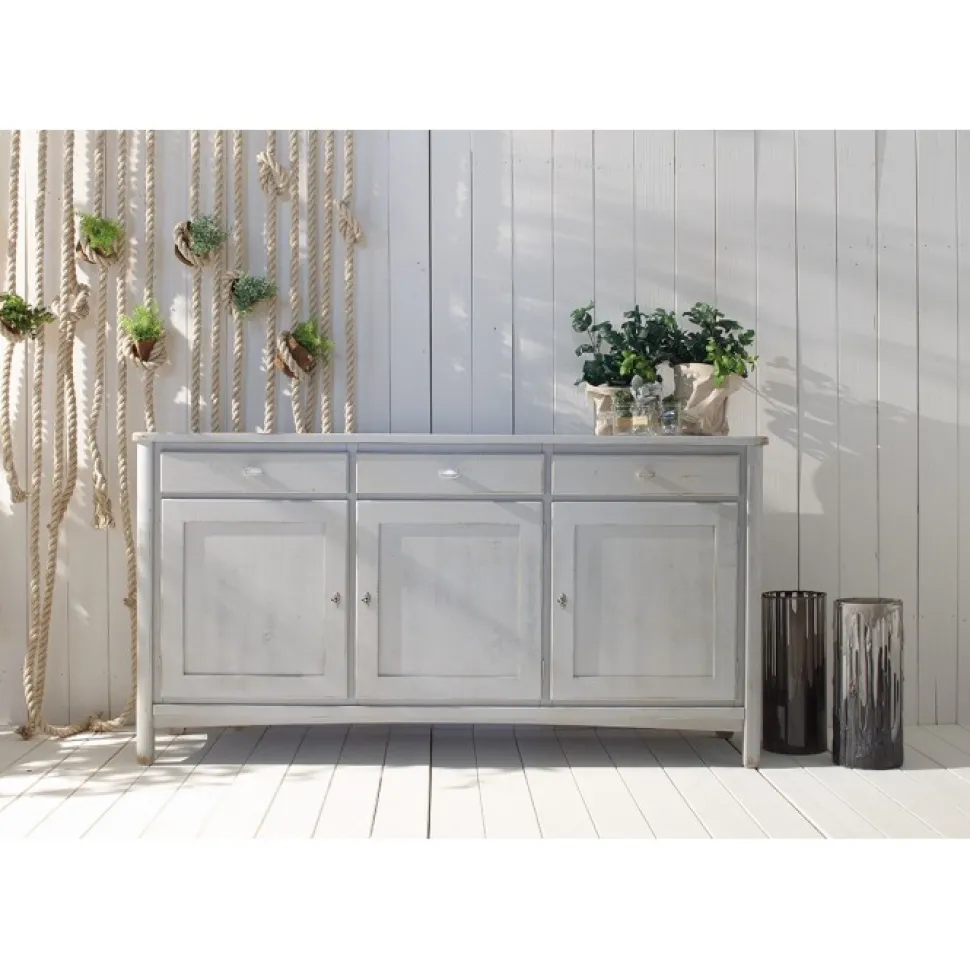 Credenza 3 Cassetti E 3 Porte 154 In Finitura Shabby Chic, Il Fascino Ed Il Calore Del Legno Vissuto, Questo E Cio Che Rende Unico Lo Stile Shabby.