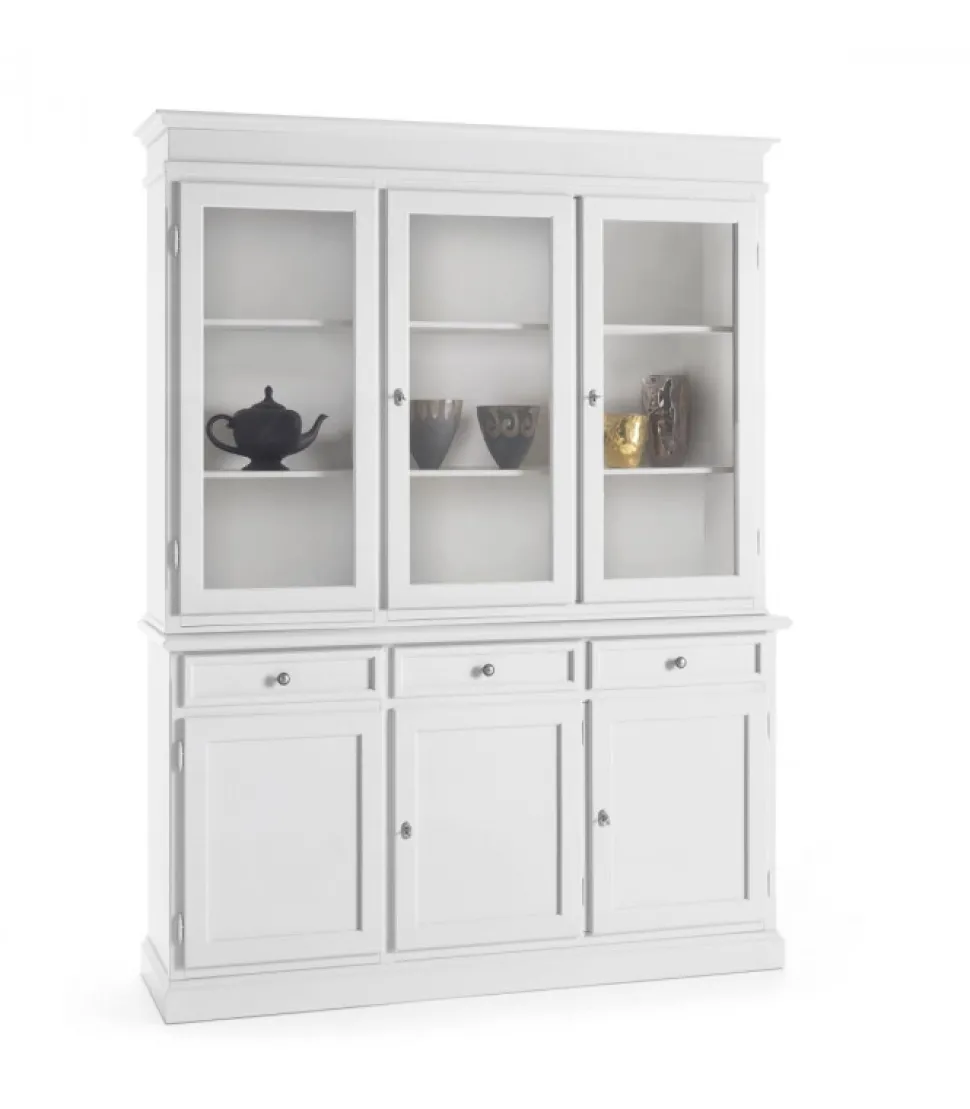 Cristalliera Classica Scicli 3 Ante Bianco Opaco. Cristalliera Composta Da Base Con 3 Ante Legno E Alzata Con 3 Ante Vetro.