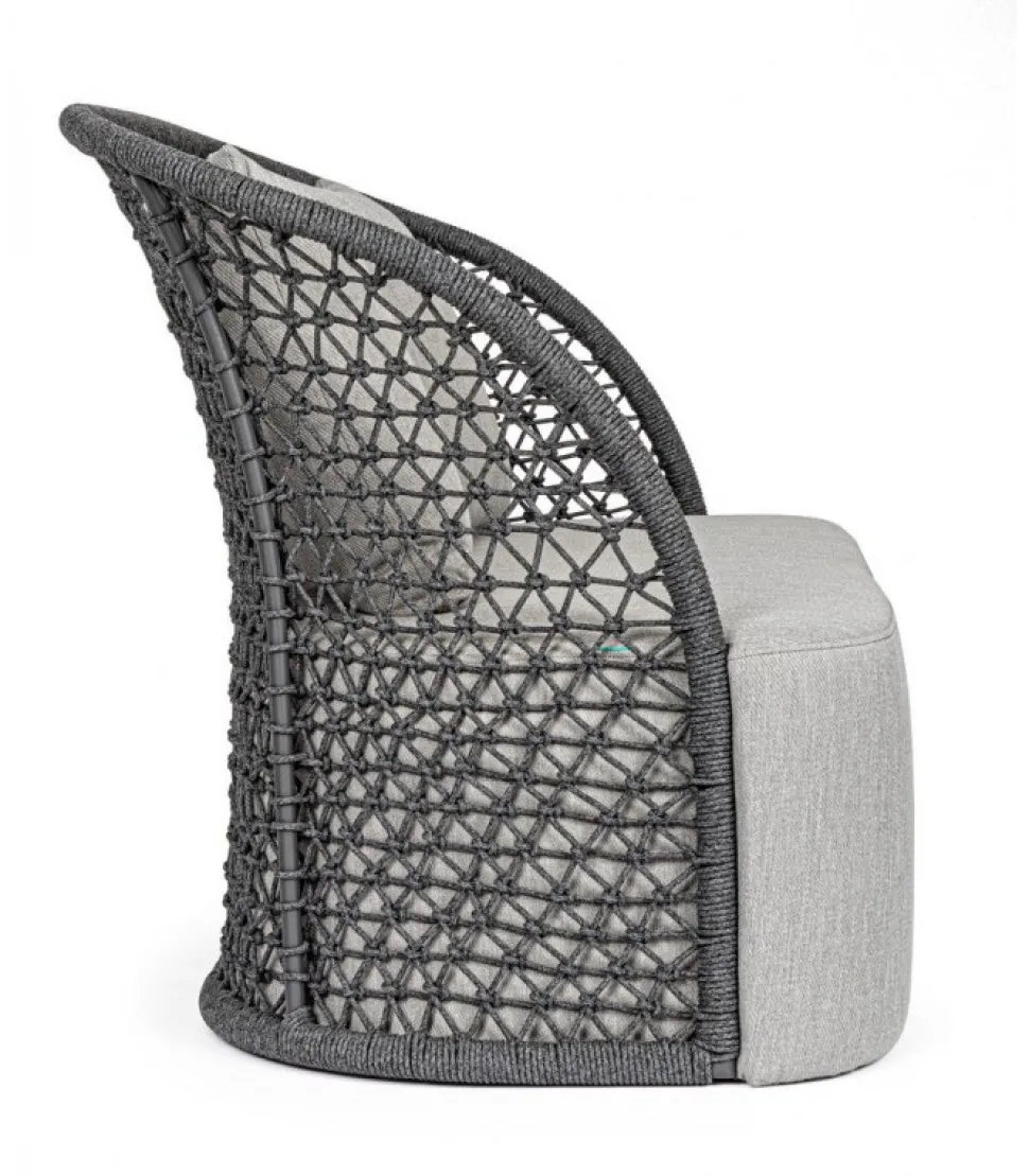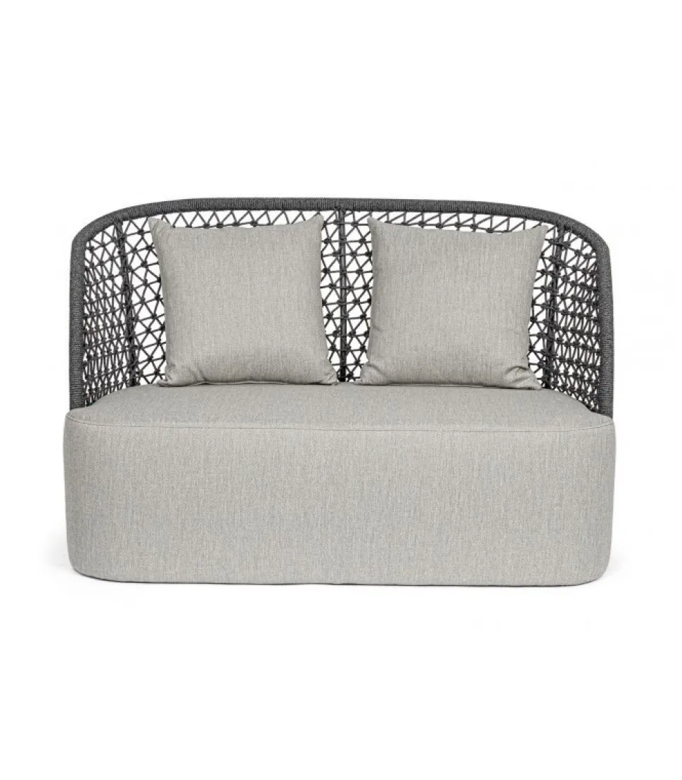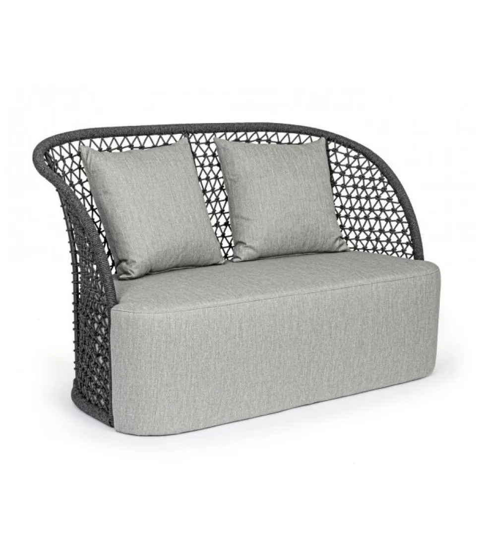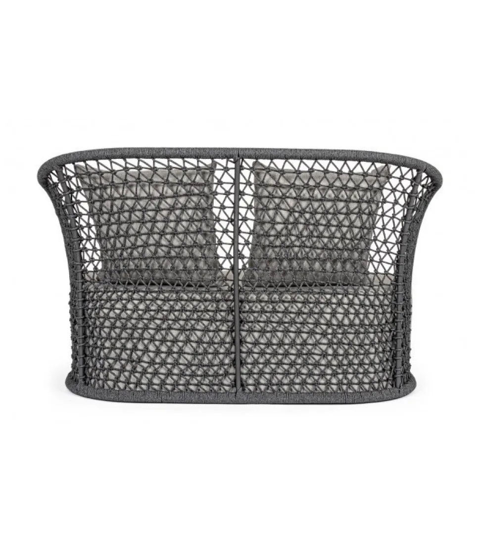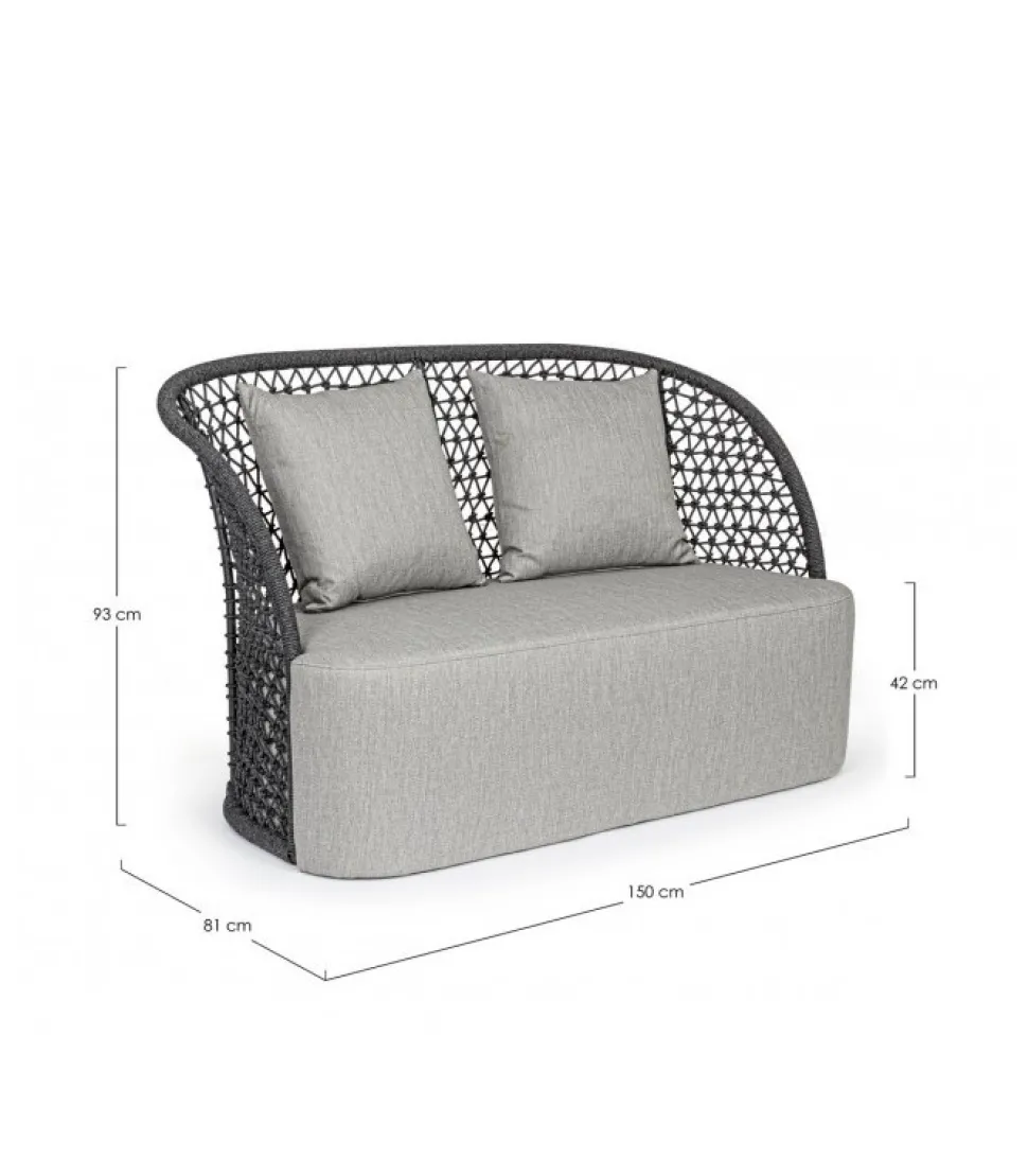 Divano 2P C-C Cuyen Antracite Struttura In Alluminio Verniciato A Polvere (Poliestere), Intreccio Con Corda In Olefin (100% Polipropilene). Seduta Con Imbottitura Impermeabilizzata, Rivestimento Non Sfoderabile Con Tessuto Per Esterno In Olefin (100% Polipropilene, 285G/M2),Idrorepellente E Resistente Ai Raggi Uv (Grado 7). Cuscino Schienale Sfoderabile Con Tessuto Olefin. – Dimensioni In Cm. 150 (L.) 81 (P.) 93 ( H.) 42 ( H1)