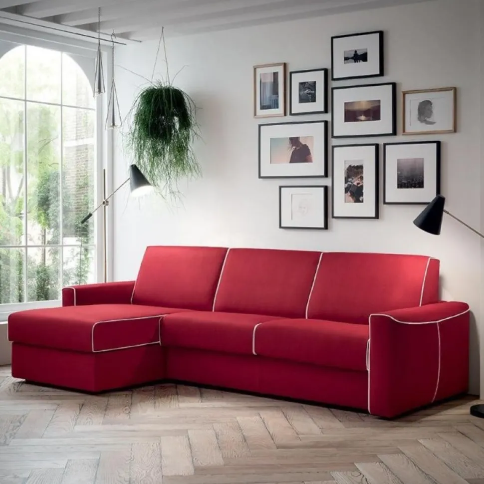 Divano Letto Dakota Con Penisola, Divano Dalla Linea Inconfondibile Rimarcata Dalle Cuciture A Vista, Un Contemporaneo Classico Adatto Per Ogni Esigenza.