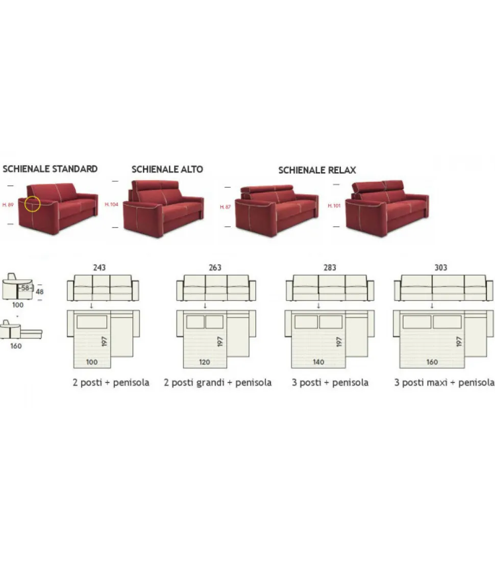 Ampia Possibilita Di Personalizzazione Per Realizzare Il Divano Su Misura Per Te:4 Larghezze Di Divano 4 Diversi Tipi Di Materassivasta Gamma Di Tessutipenisola Con Contenitore (Opzionale)Cuciture A Vista Disponibili In Tinta O In Contrastodivano Completamente Sfoderabile, Con Sistema Di Apertura Facilitata