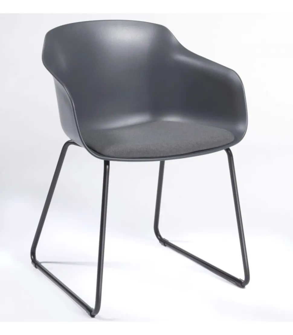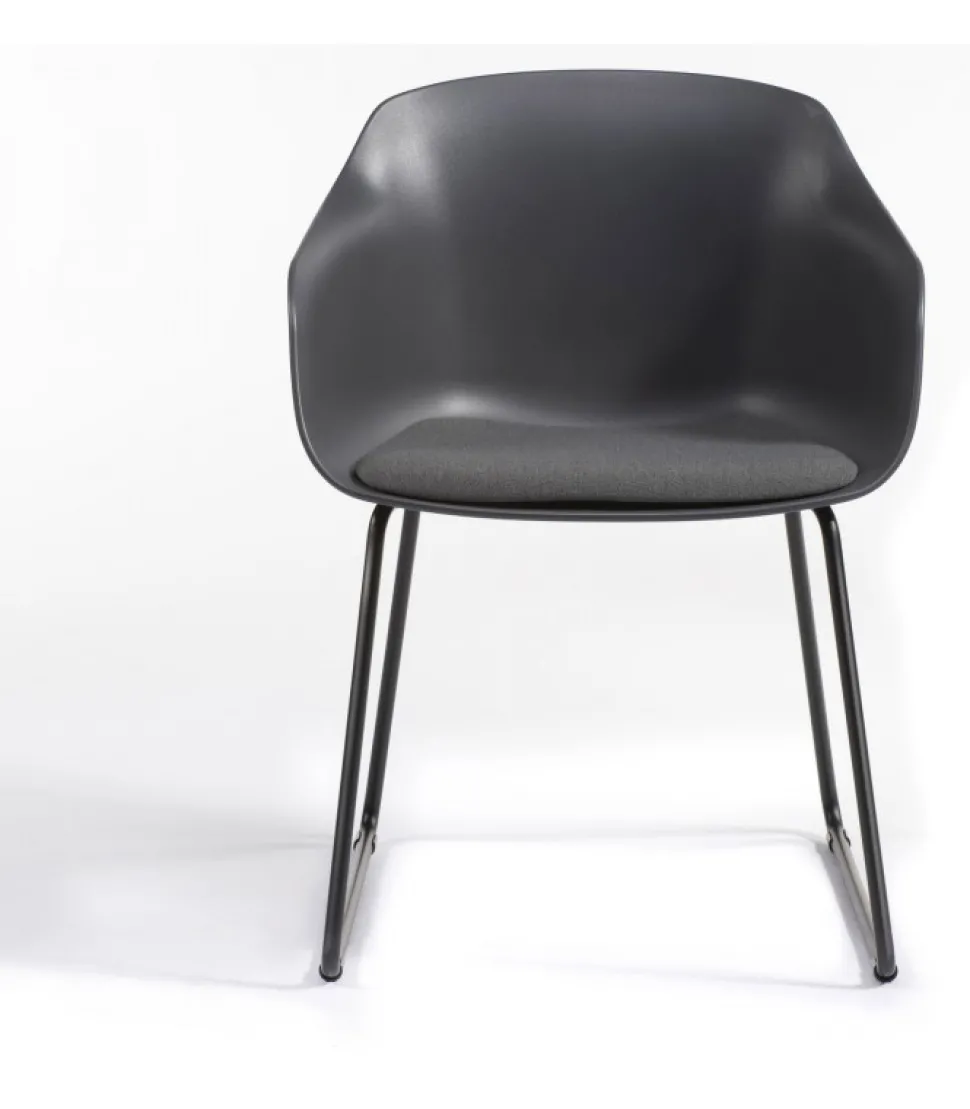 Sedia Dame St Con Cuscino Tappezzato Sulla Scocca In Tecnopolimero (Disponibile In 8 Diversi Colori). La Struttura A Slitta E In Metallo Cromato O Verniciato Di Nero.