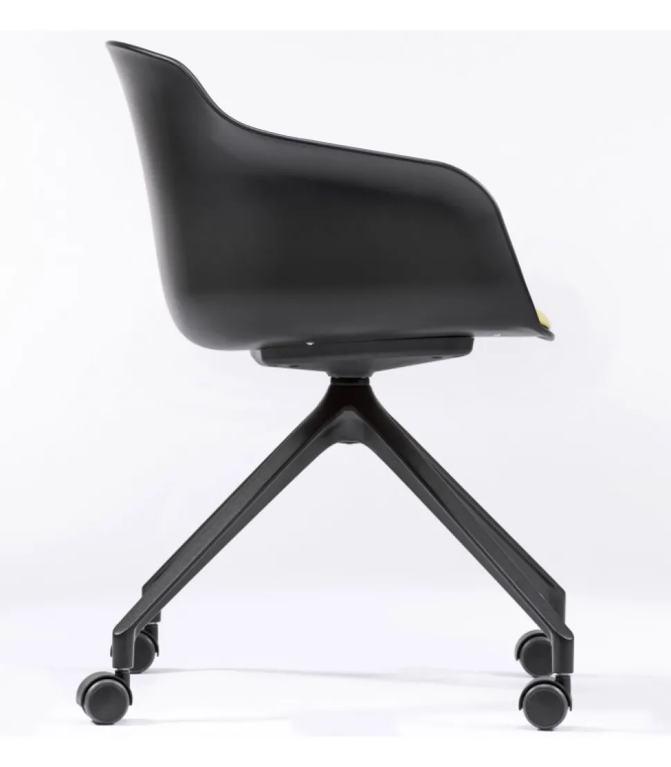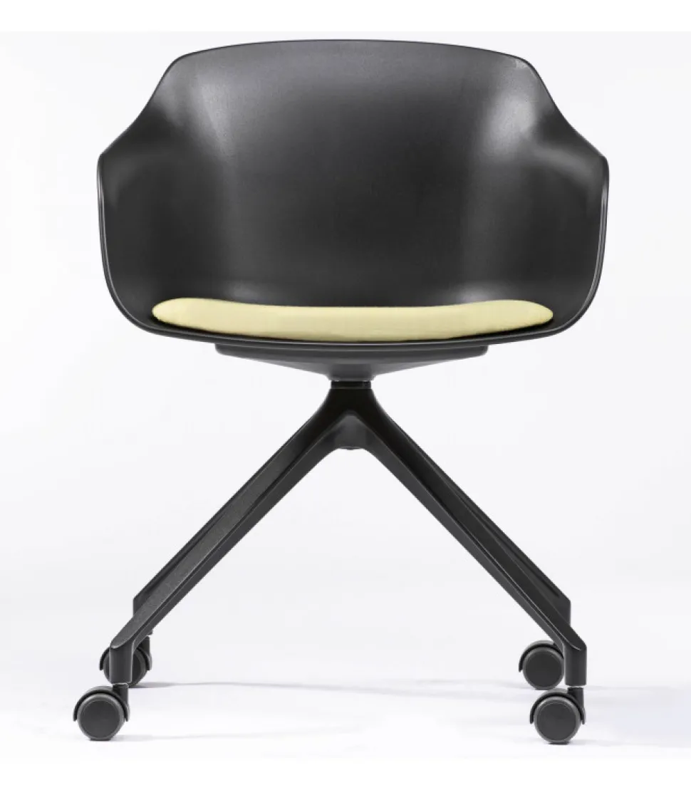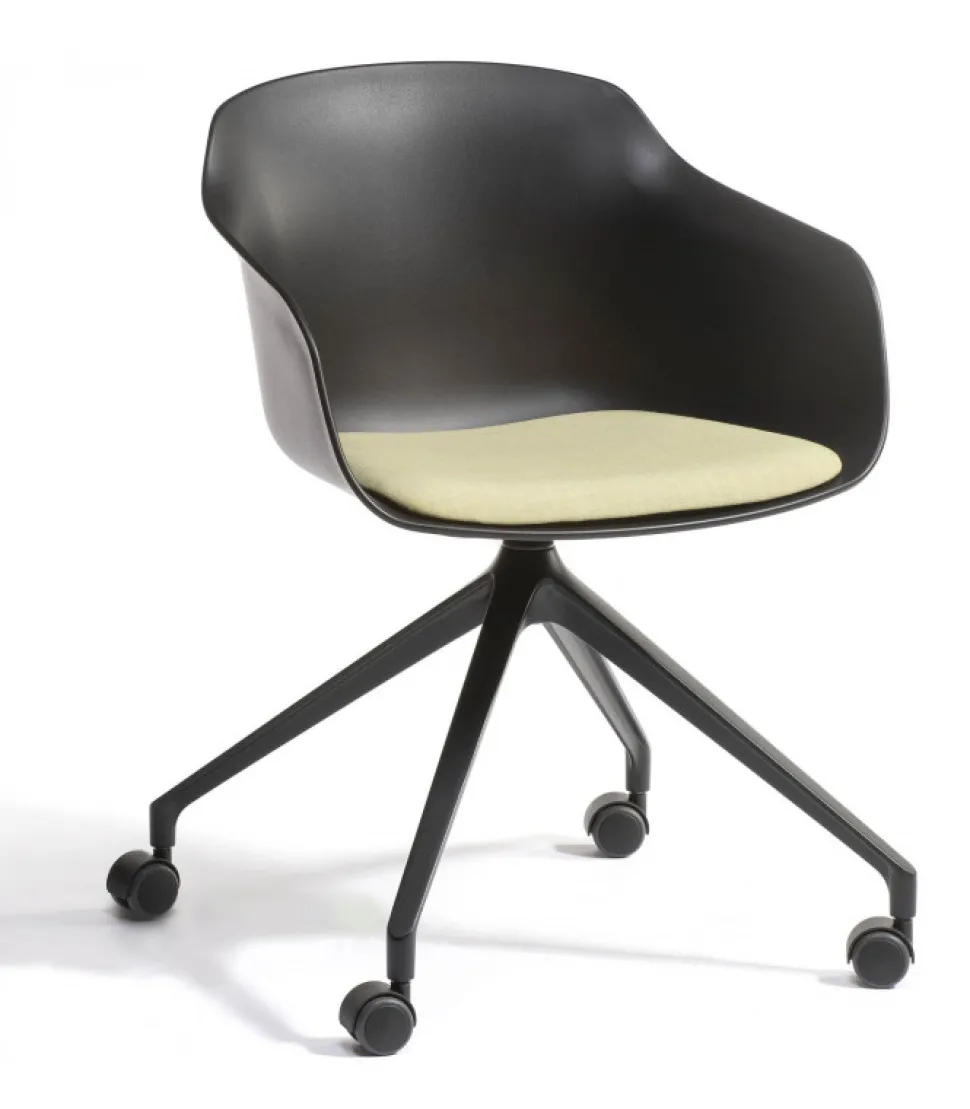 Sedia Dame Ur Girevole Su Basamento A 4 Razze Su Piedini O Su Ruote In Alluminio Verniciato (Bianco O Nero). La Scocca E In Tecnopolimero (Disponibile In 8 Colori) Accessoriata Di Cuscino Tappezzato (Disponibile In 7 Tessuti).