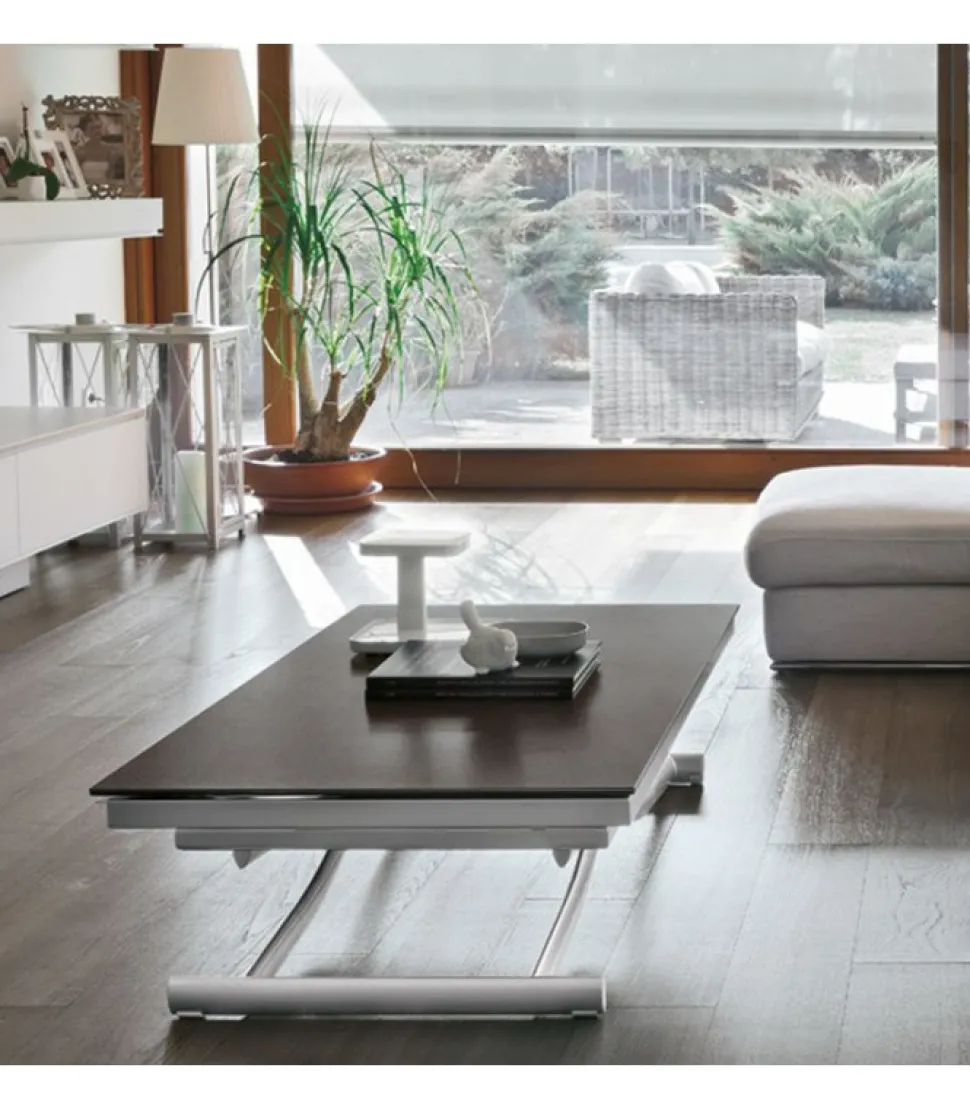 Dione Plus E Un Tavolo Allungabile Ed Alzabile, La Struttura E In Metallo Verniciato Ed Il Piano In Gres Porcellanato O Vetro Temperato. Le Allunghe Laterali Sono Realizzate In Mdf Laccato In Tinta Con Le Gambe. Articolo Adatto Alla Zona Giorno Ed E Disponibile In Piu Combinazioni Di Colore.