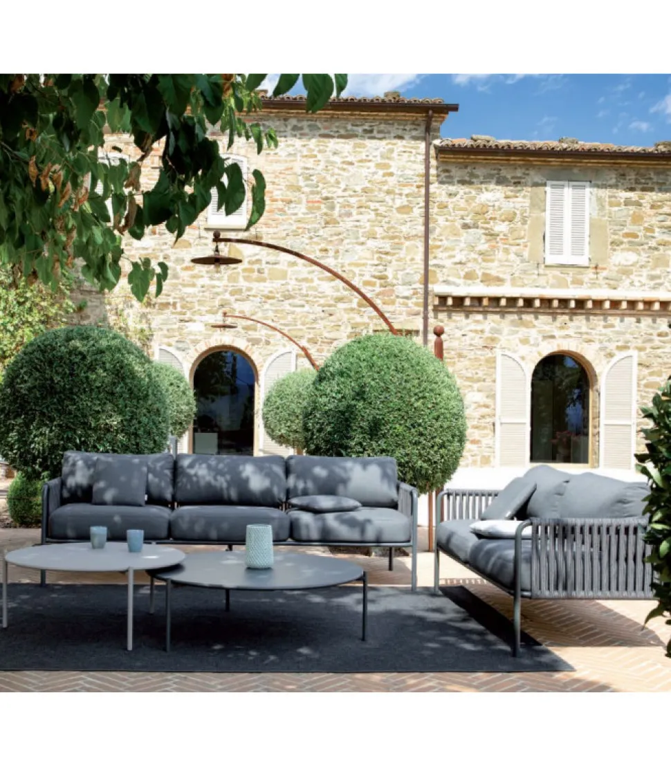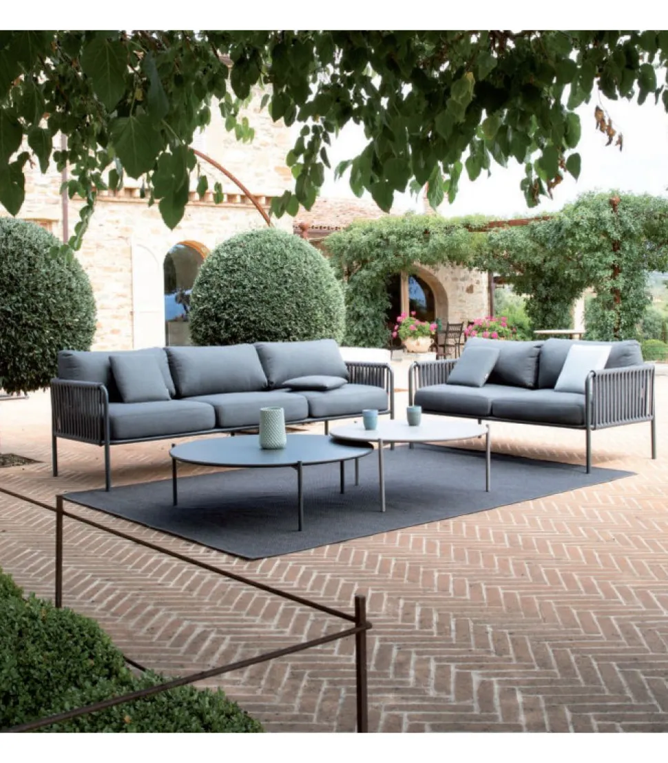 Divano Key West Dv Con Braccioli In Corda E Struttura A 4 Gambe In Metallo Verniciato. La Seduta E Lo Schienale Sono Imbottiti.