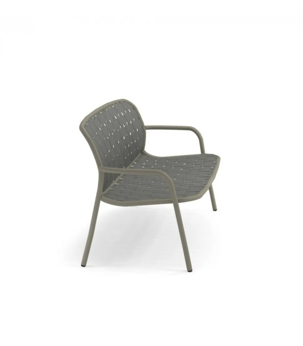Divano Con Struttura (Con Braccioli) In Alluminio Verniciato, Lo Schienale E La Seduta Sono In Cinghie Elastiche. E Disponibile In Cinque Abbinamenti Di Colori Diversi Ed E Impilabile (Per Un Massimo Di 4 Divani Impilati).