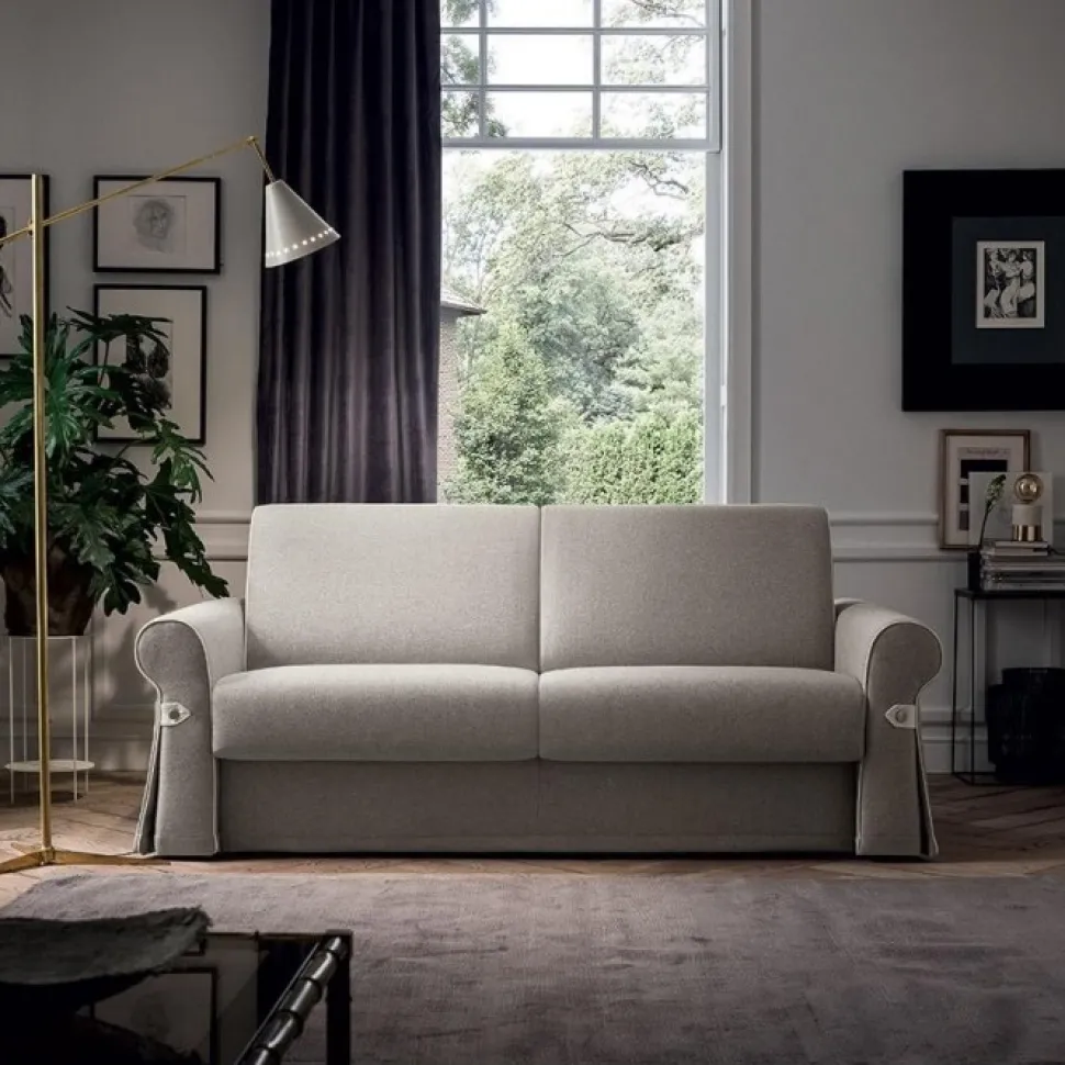 Arian Divano Letto Dallo Stile Contemporaneo E Caratterizzato Da Eleganti Braccioli Curvi Impreziositi Da Un Asola Con Bottone Frontale.